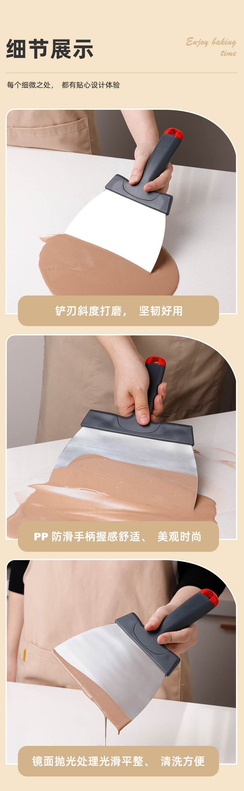 국경 간 뜨거운 판매 초콜릿 온도 조절기 삽 스테인레스 스틸 반죽 절단 밀가루 스크레이퍼 크림 스크레이퍼 베이킹 도구 재고