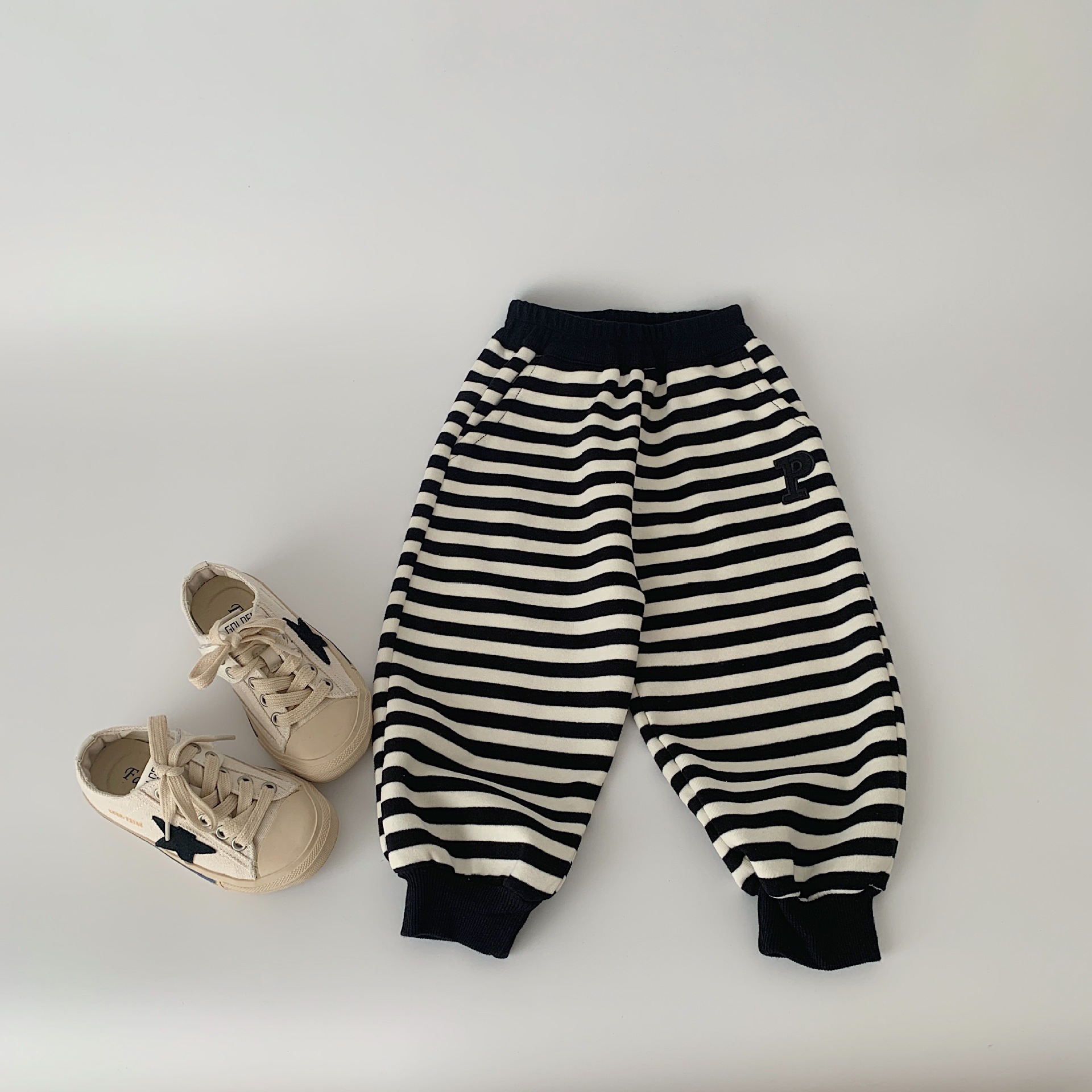 Maibao 어린이 스웨트 팬츠 2024 봄 새 소년 스포츠 바지 어린이 줄무늬 바지 소녀 편지 캐주얼 바지