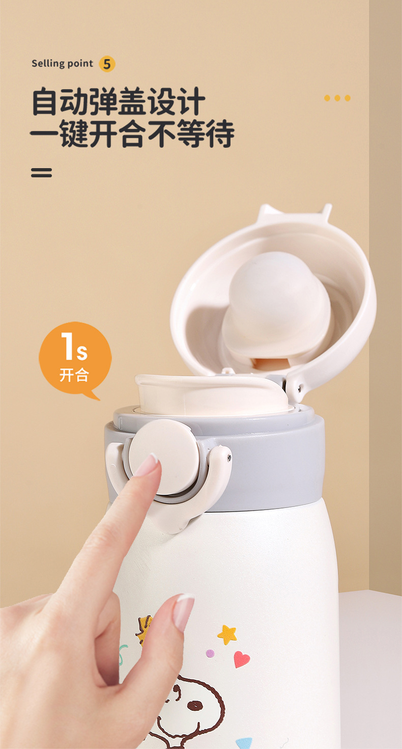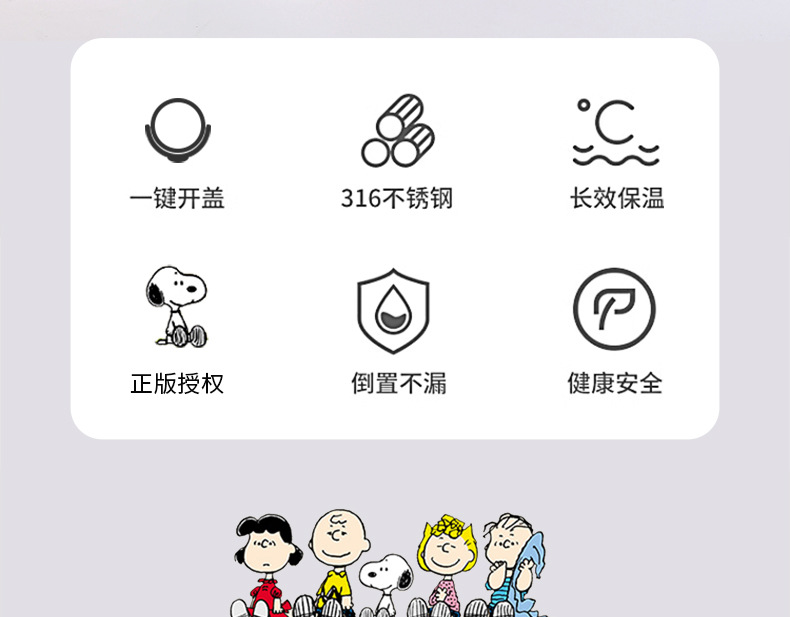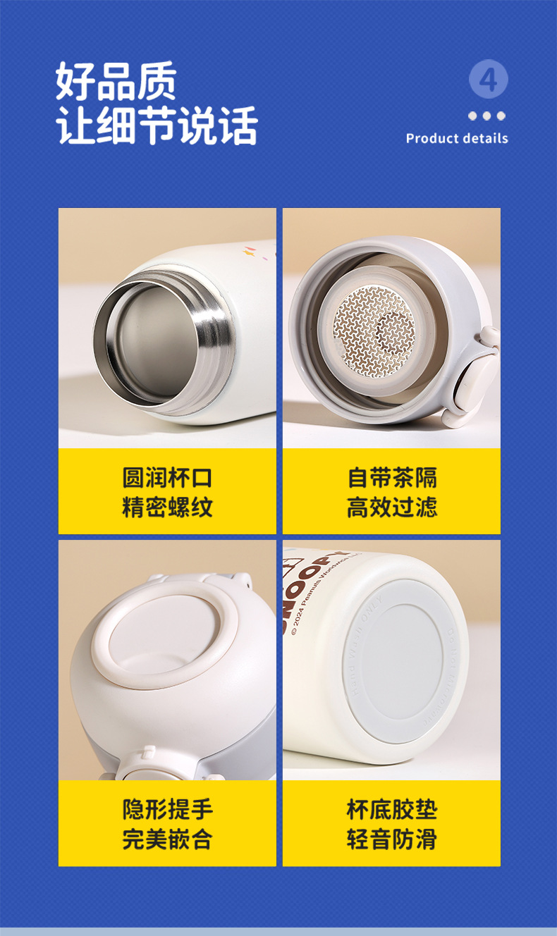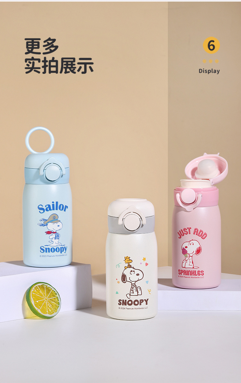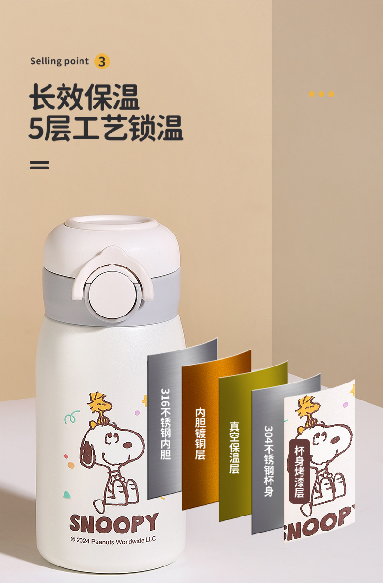 차 칸막이가있는 스테인레스 스틸 휴대용 미니 포켓 316 소년 소녀 용 스누피 진공 컵스토어 가기