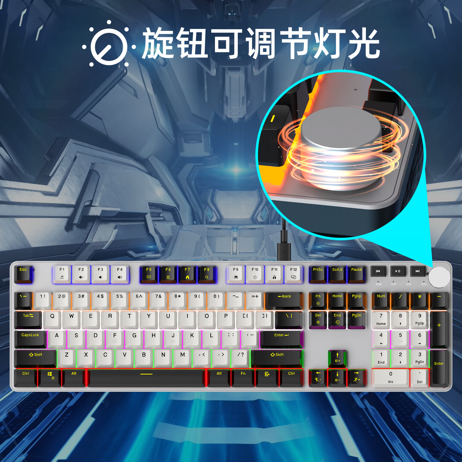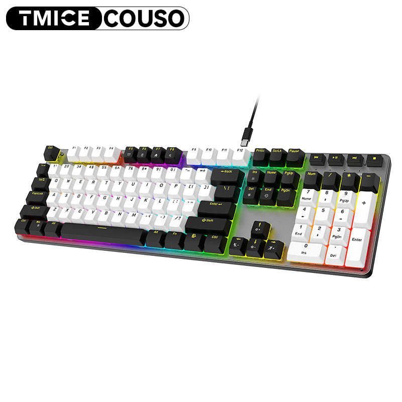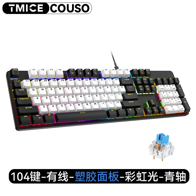 【CX20 104键青轴 塑胶面板】-黑白色-彩虹光-有线