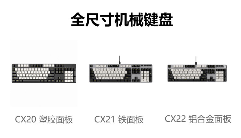 【CX22 107键青轴 铝合金面板】-黑白色-彩虹光-有线