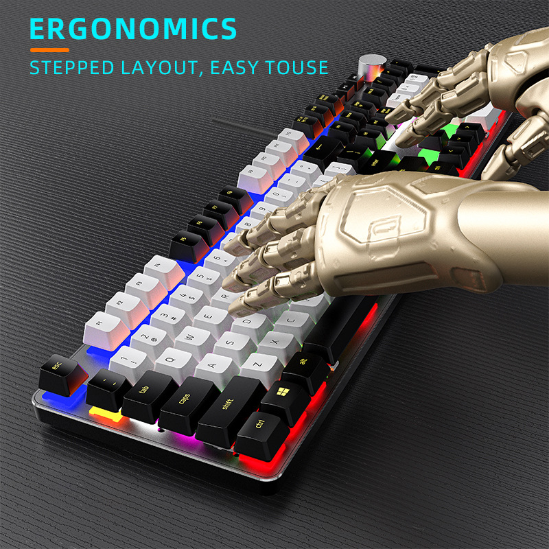 【CX21 108键青轴 金属面板】-黑白色-彩虹光-有线