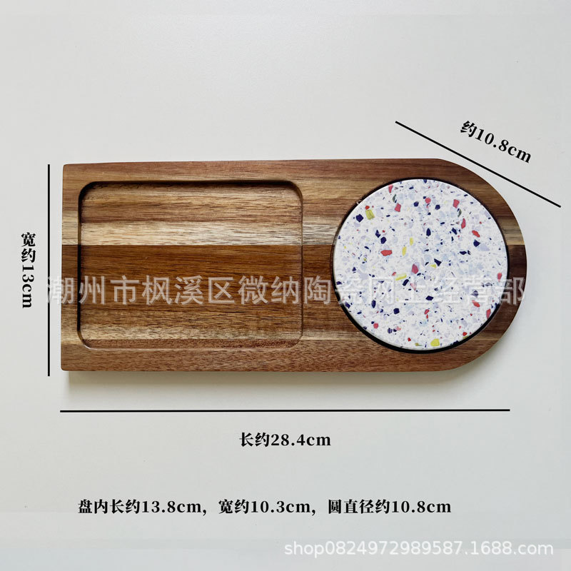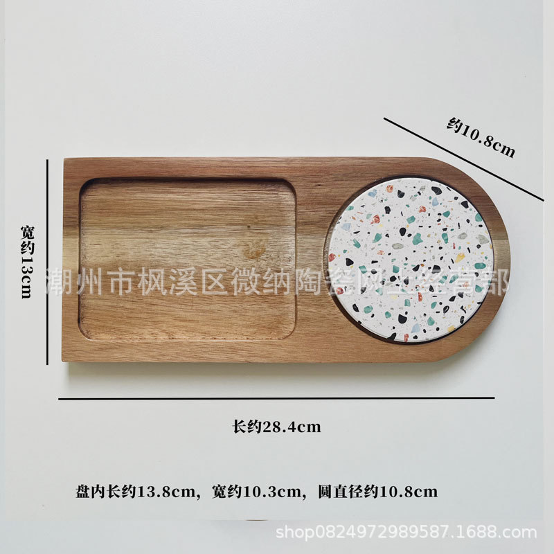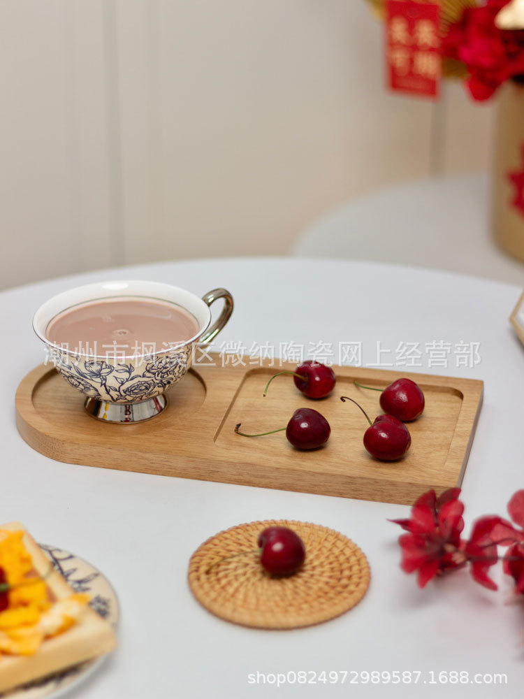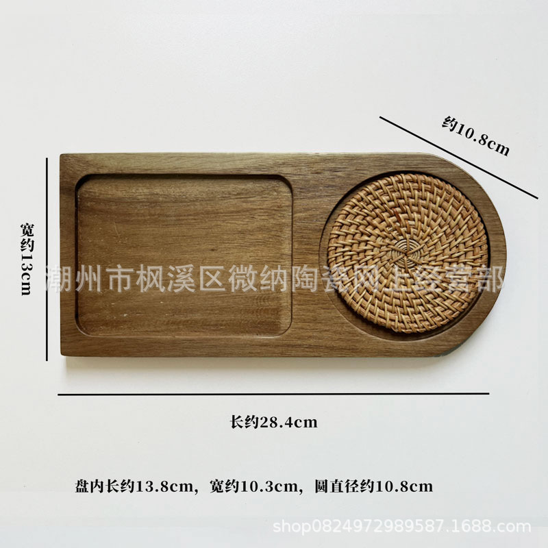 국경 간 일본식 나무 트레이 커피 숍 디저트 빵 애프터눈 티 스낵 플레이트 단단한 나무 아침 식사 플레이트 복고풍 스타일스토어 가기
