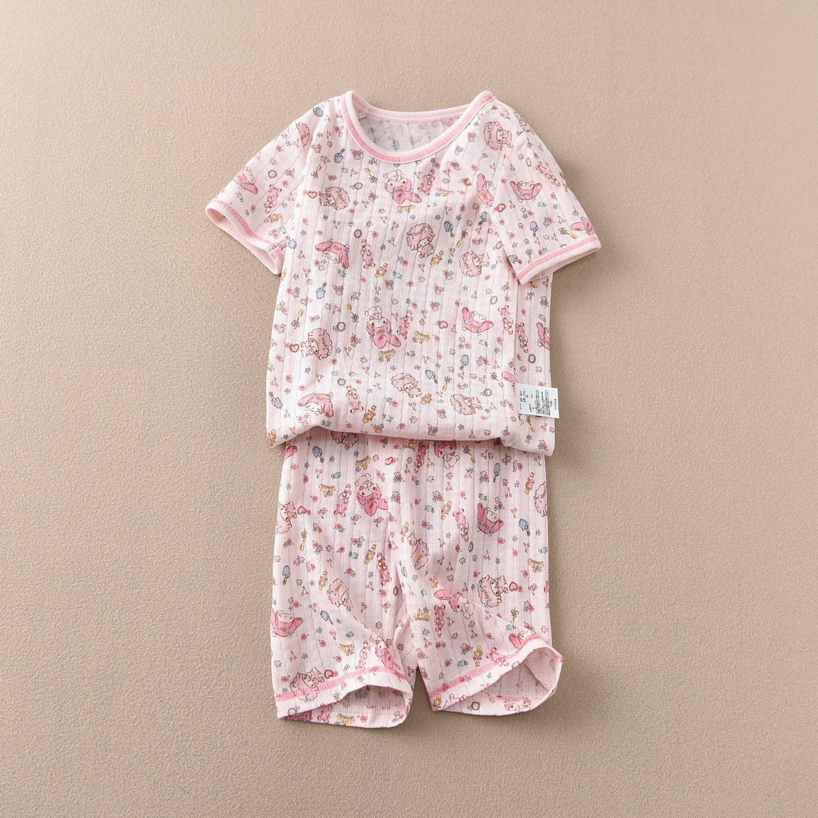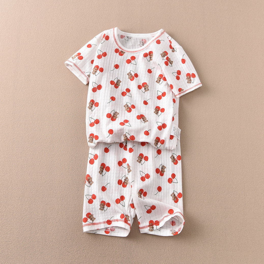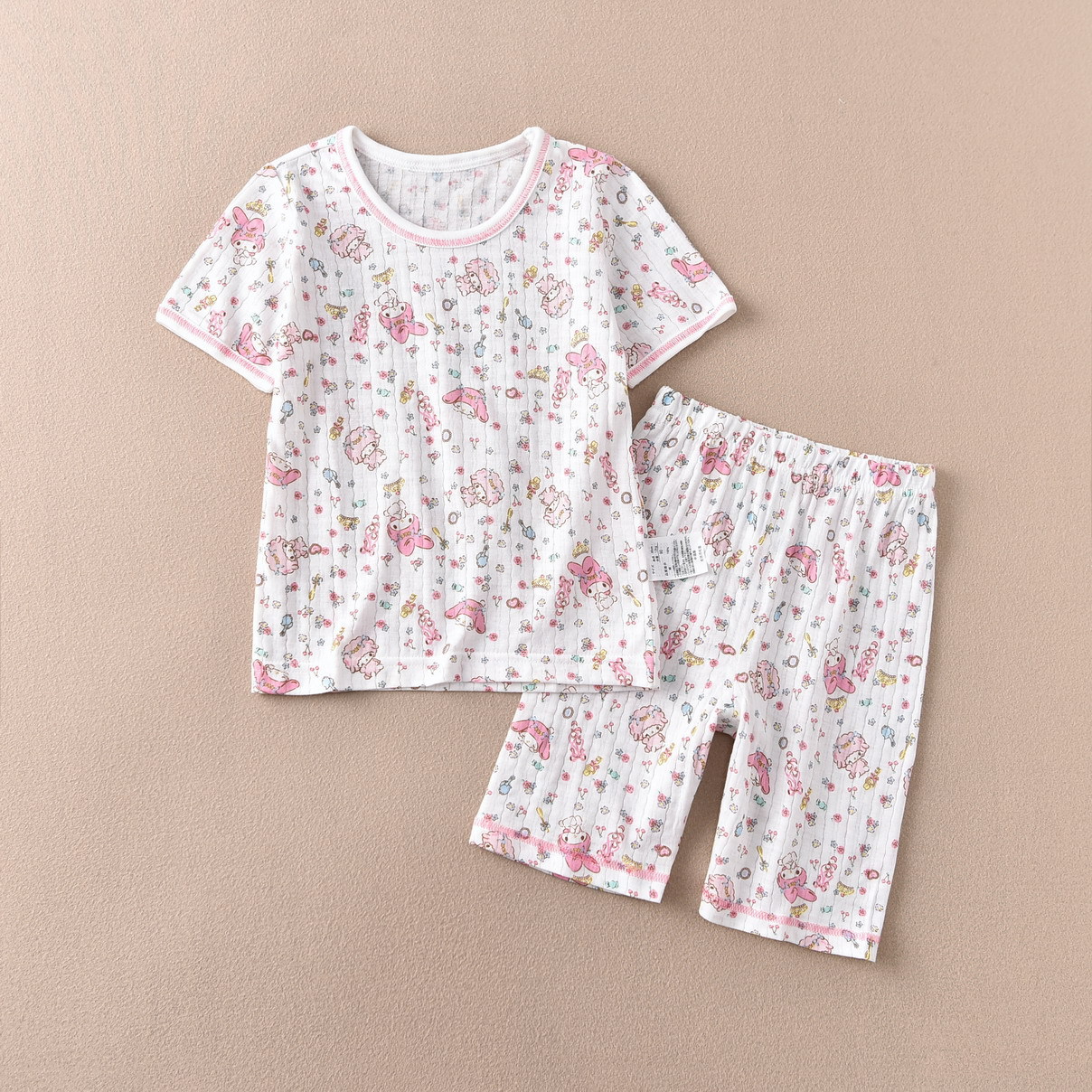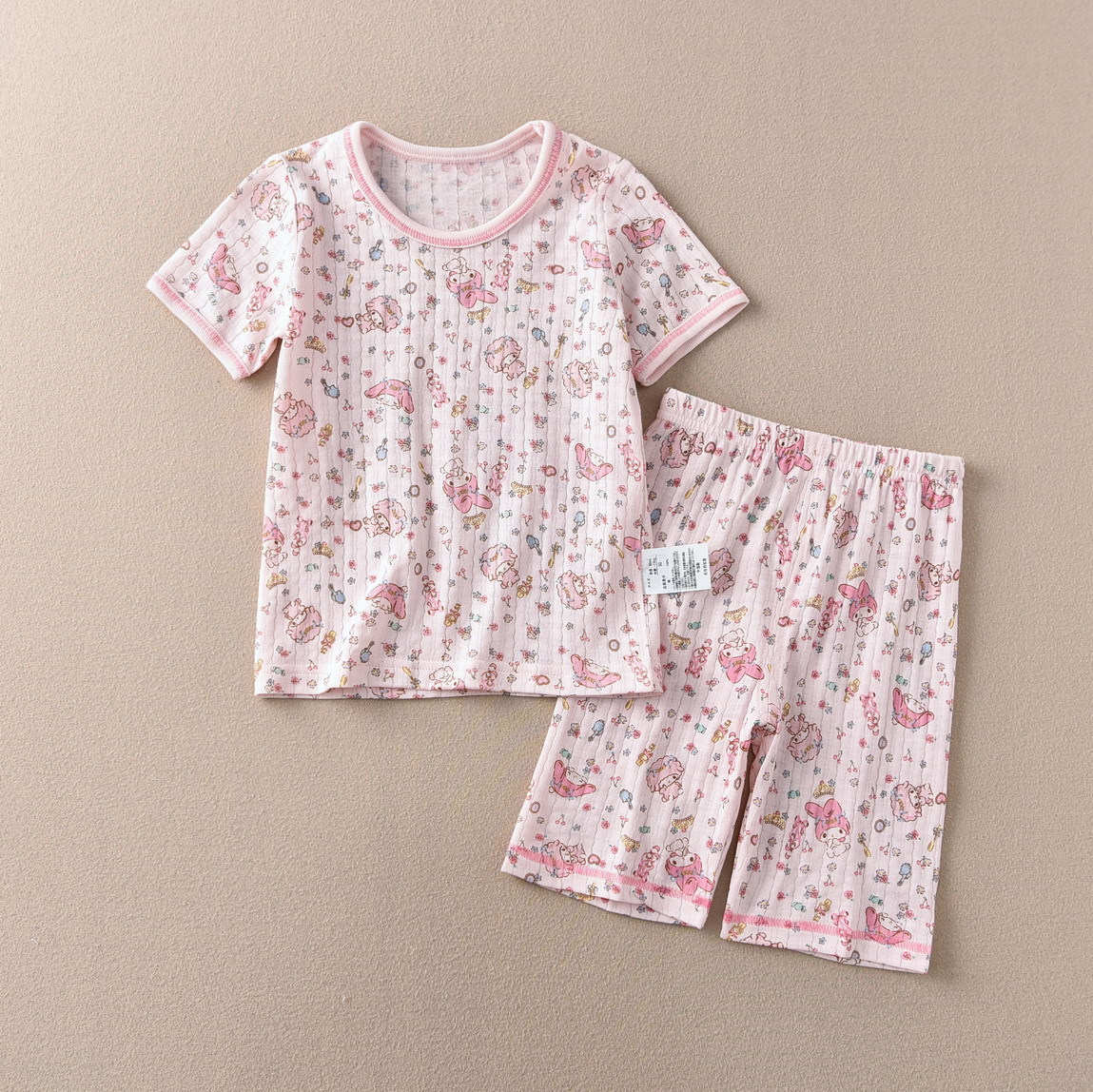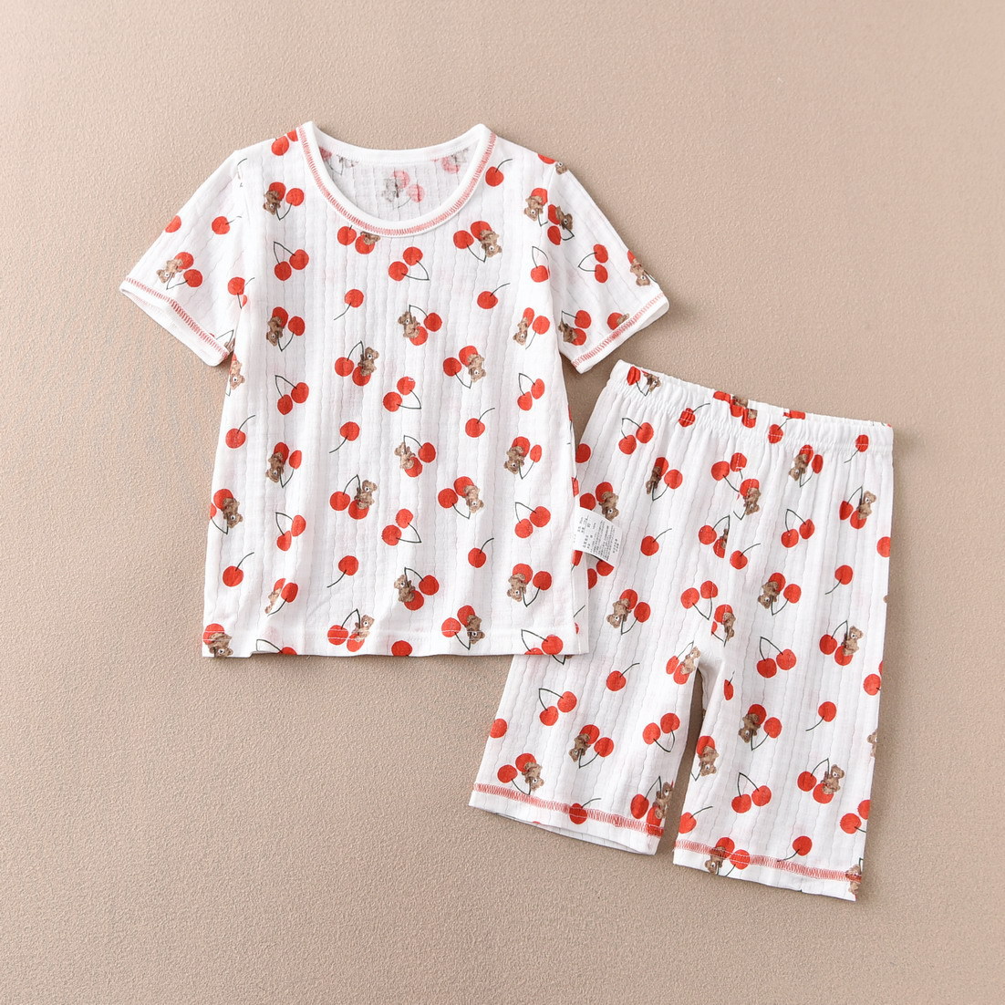 유통 어린이 소녀 짧은 소매 바지 세트 여름 홈 의류 공장 직접 일본 트위스트 꽃 대나무 얇은 면화