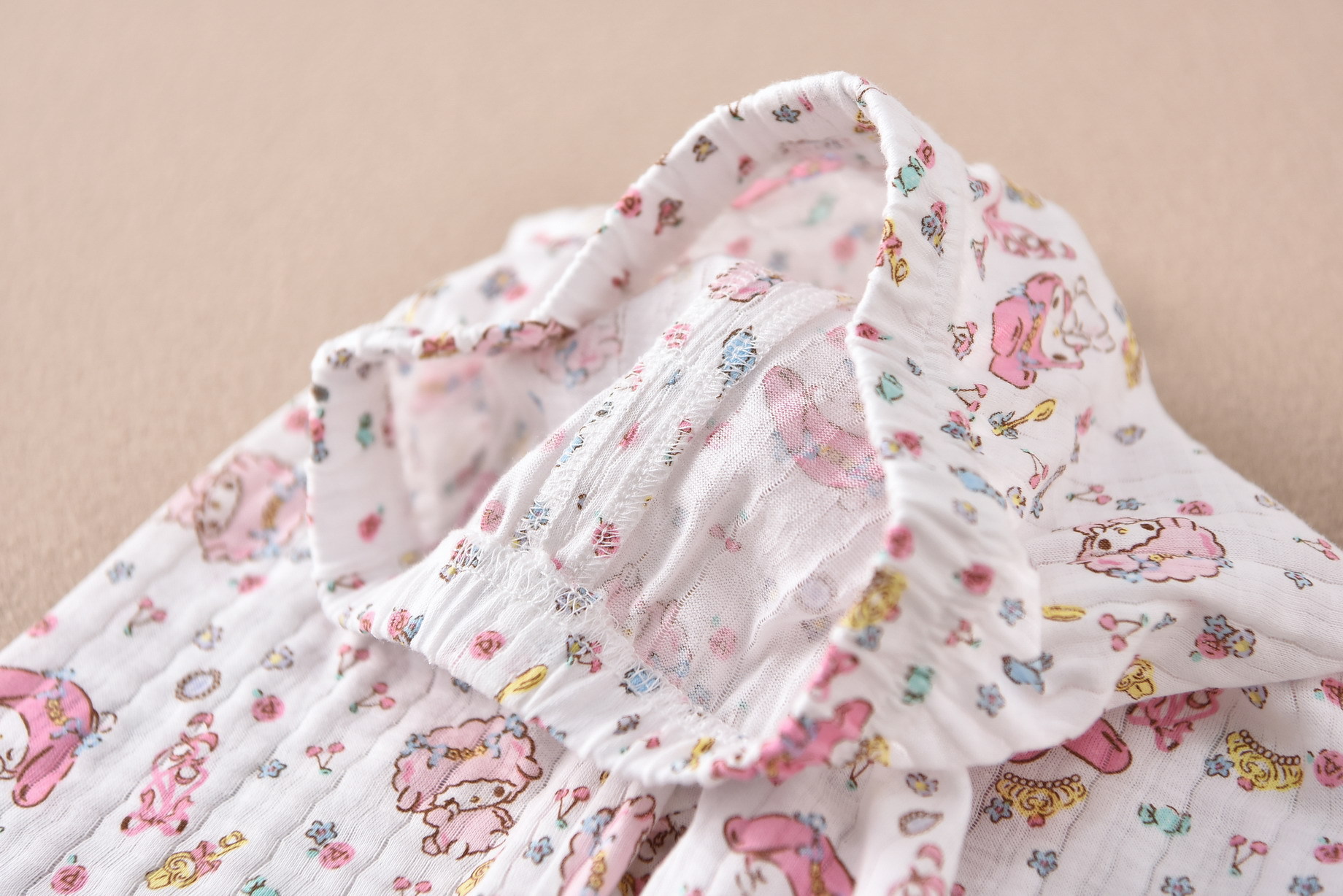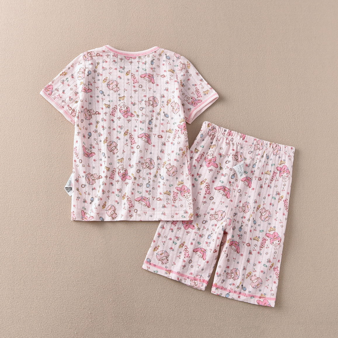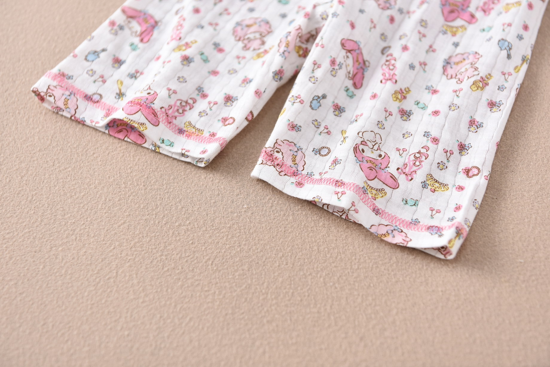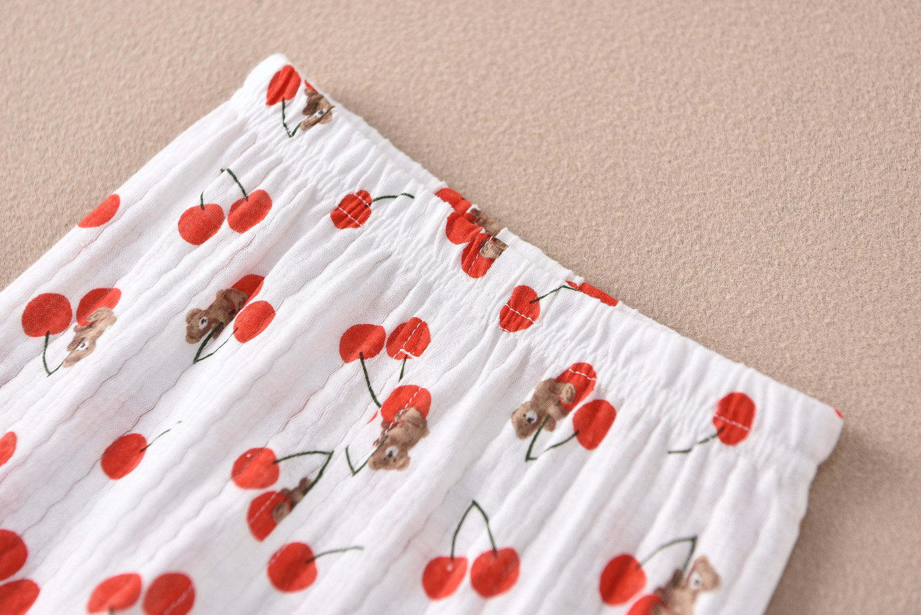 유통 어린이 소녀 짧은 소매 바지 세트 여름 홈 의류 공장 직접 일본 트위스트 꽃 대나무 얇은 면화