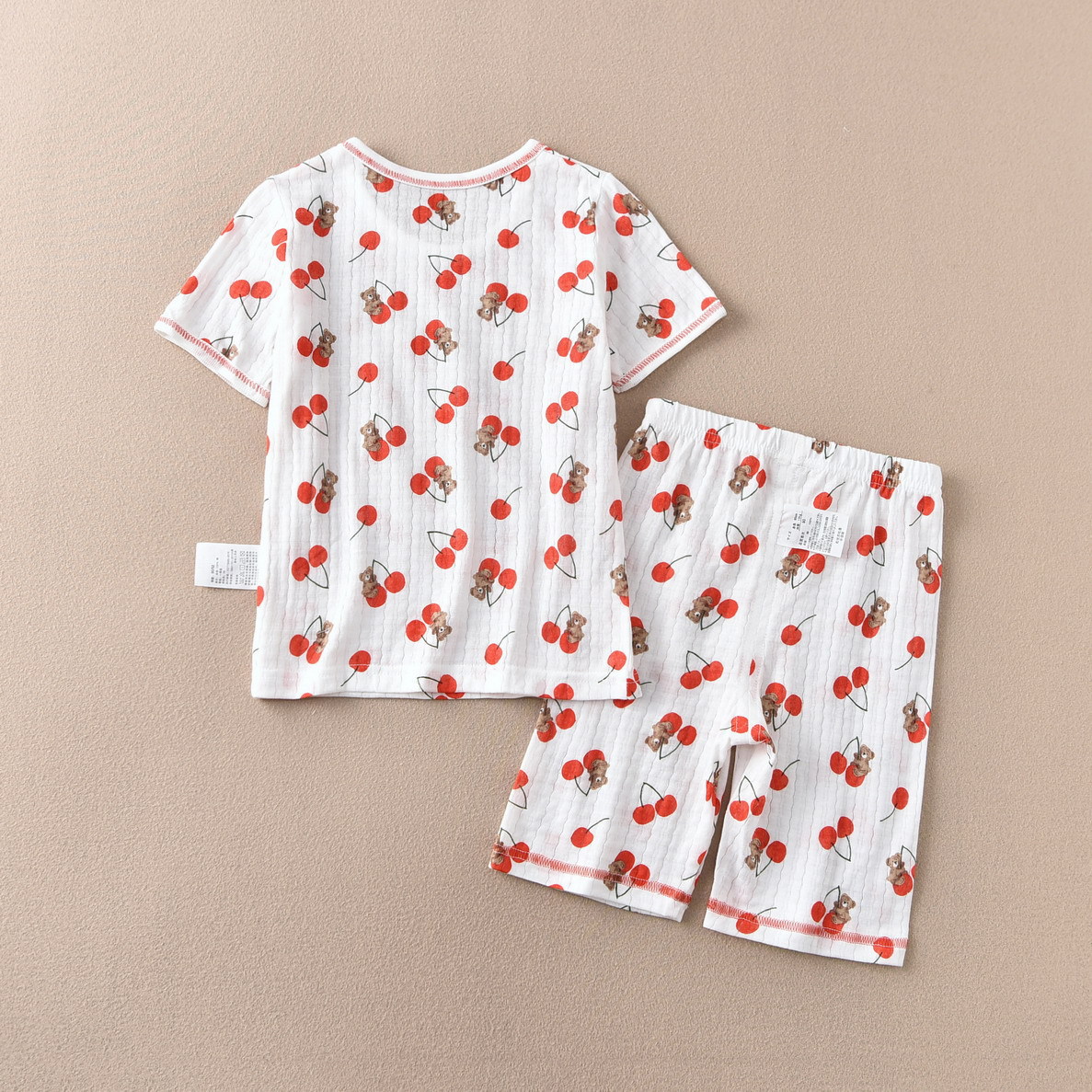 유통 어린이 소녀 짧은 소매 바지 세트 여름 홈 의류 공장 직접 일본 트위스트 꽃 대나무 얇은 면화스토어 가기