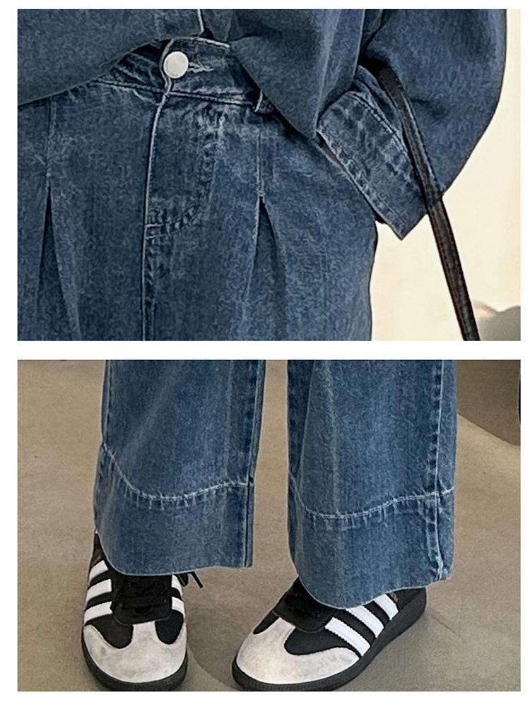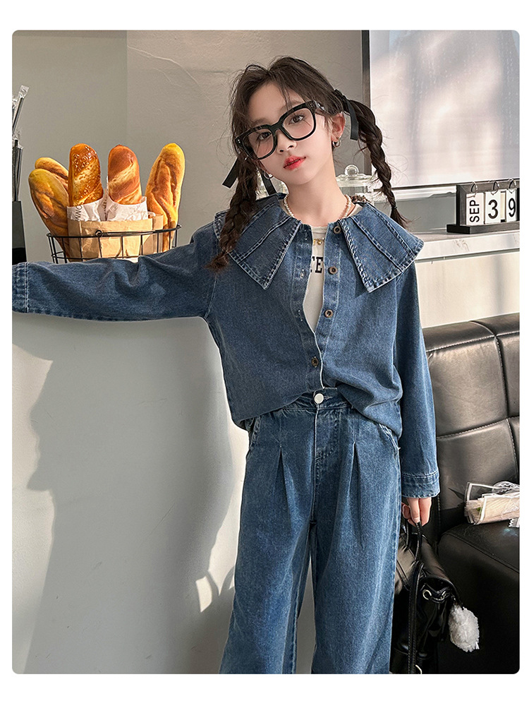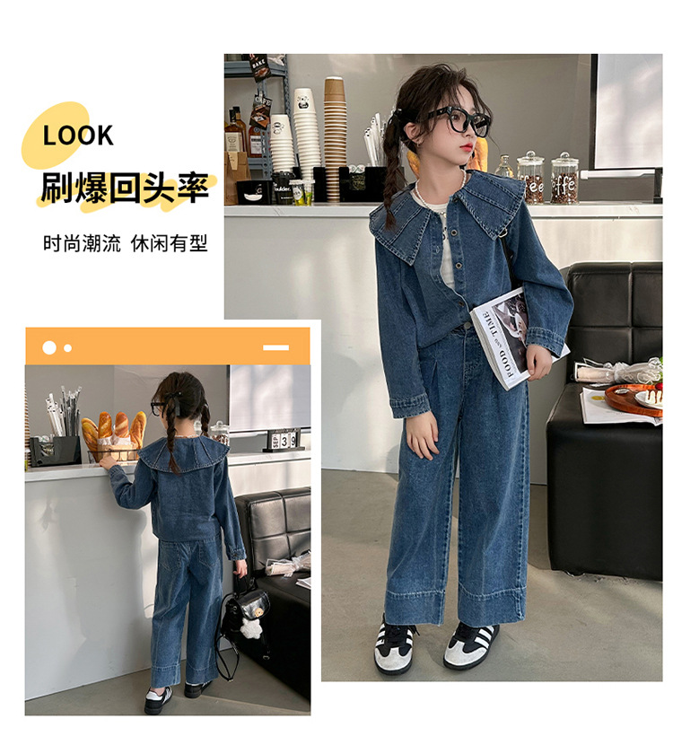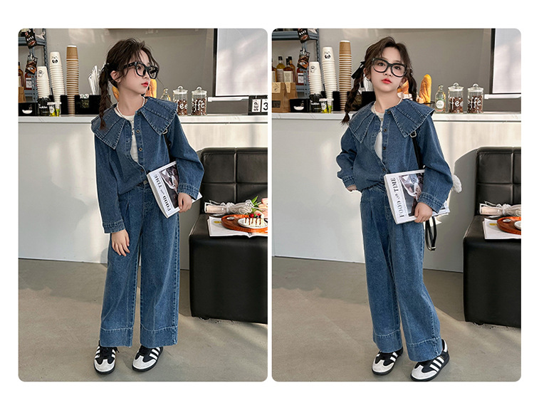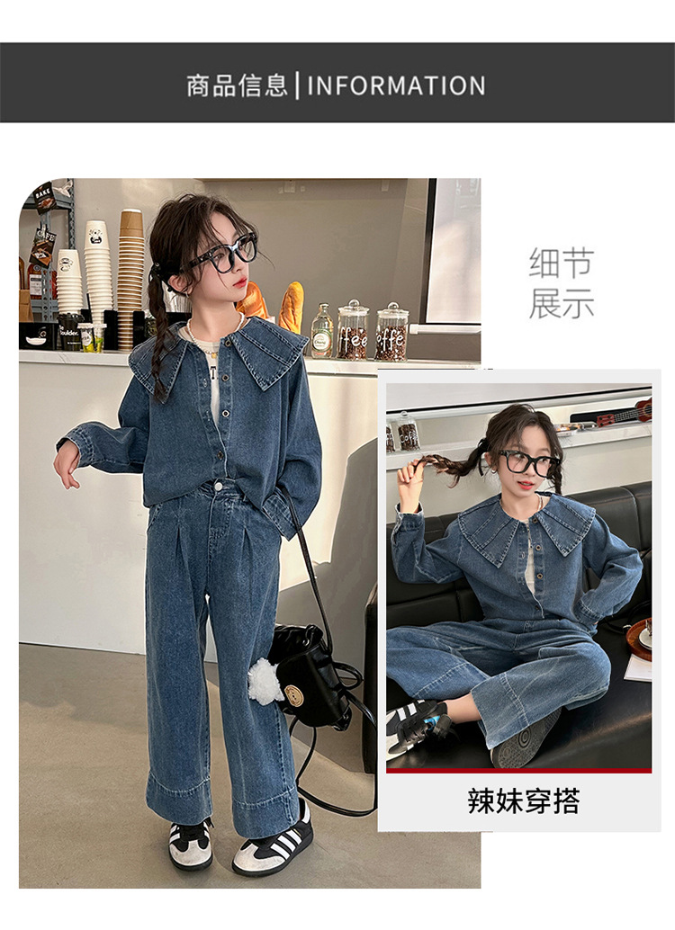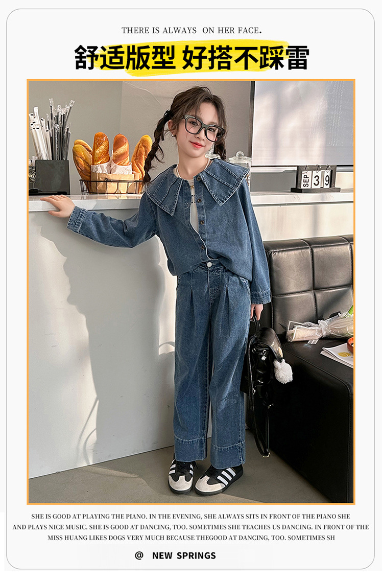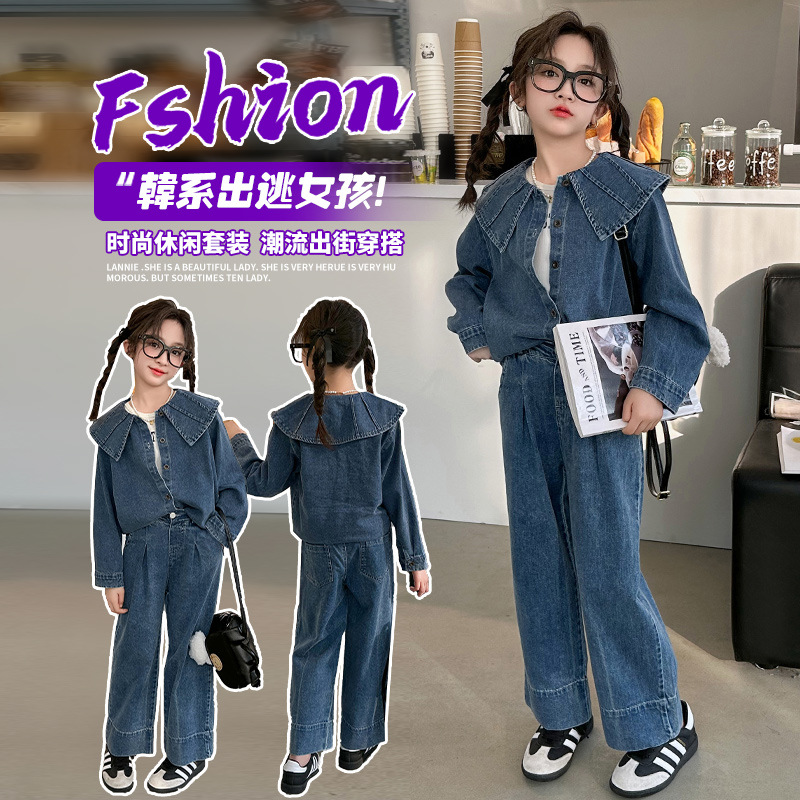 소녀 한국 캐주얼 데님 세트 봄 새로운 서양식 소녀 투피스 느슨한 아동복 원피스 패션스토어 가기