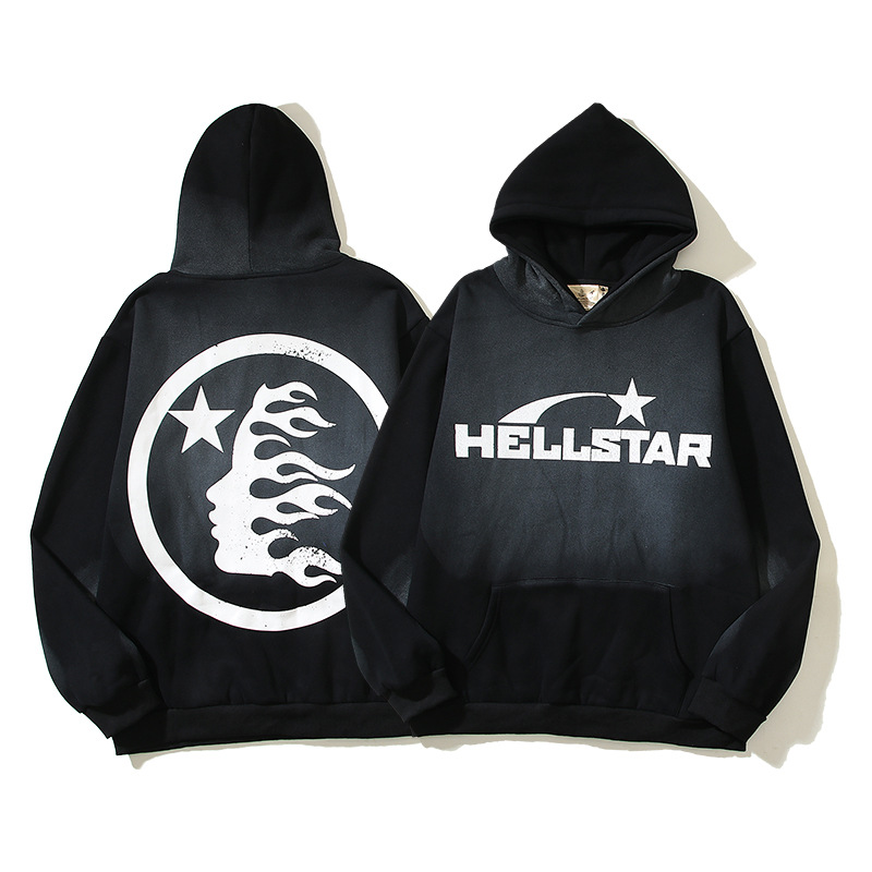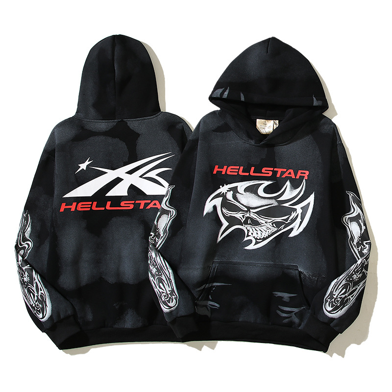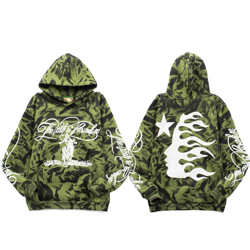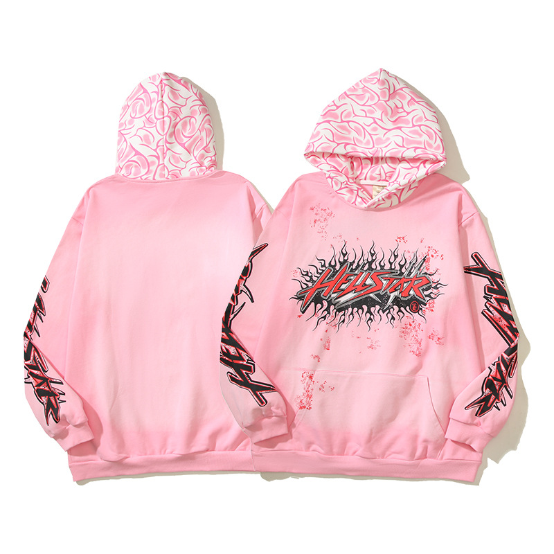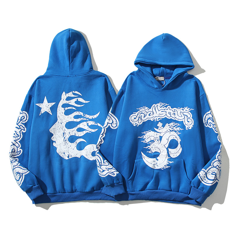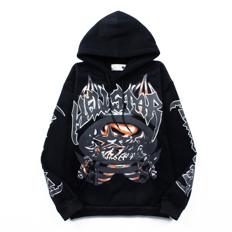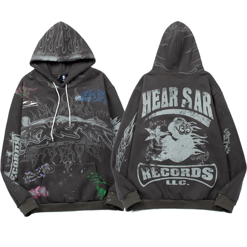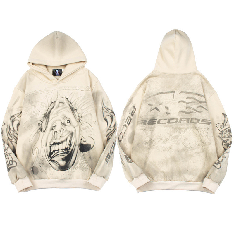 유럽과 미국 스타일 Kanye 빈티지 오래 된 코트 지옥 스타 인쇄 불꽃 키린 팔 후디 스웨터
