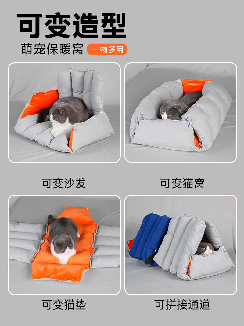 구멍이 뚫린 삼각형 소파 고양이 개집, 결합 및 변형 가능, 다용도 따뜻한 가을 겨울 소형견 애완동물 개집 용품
