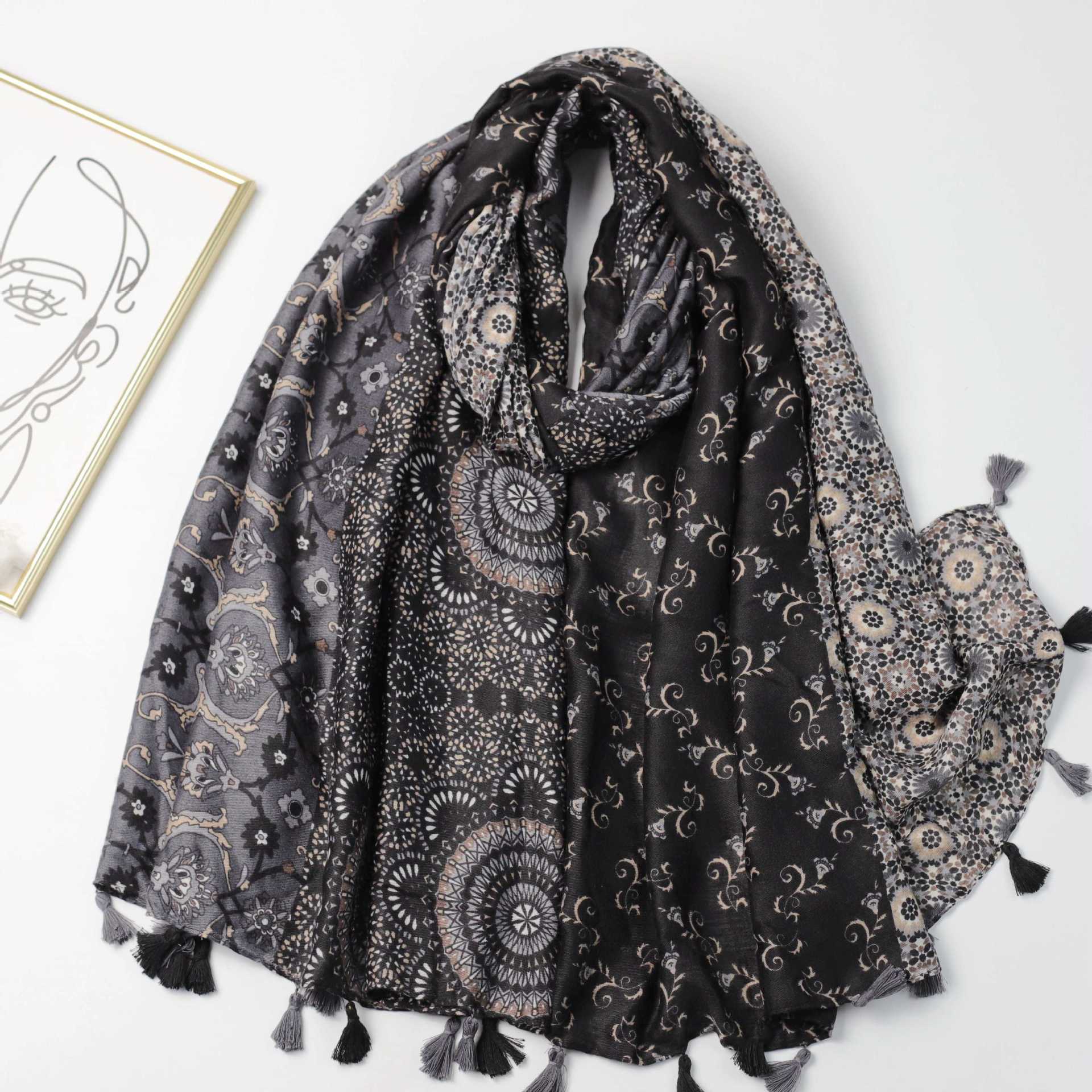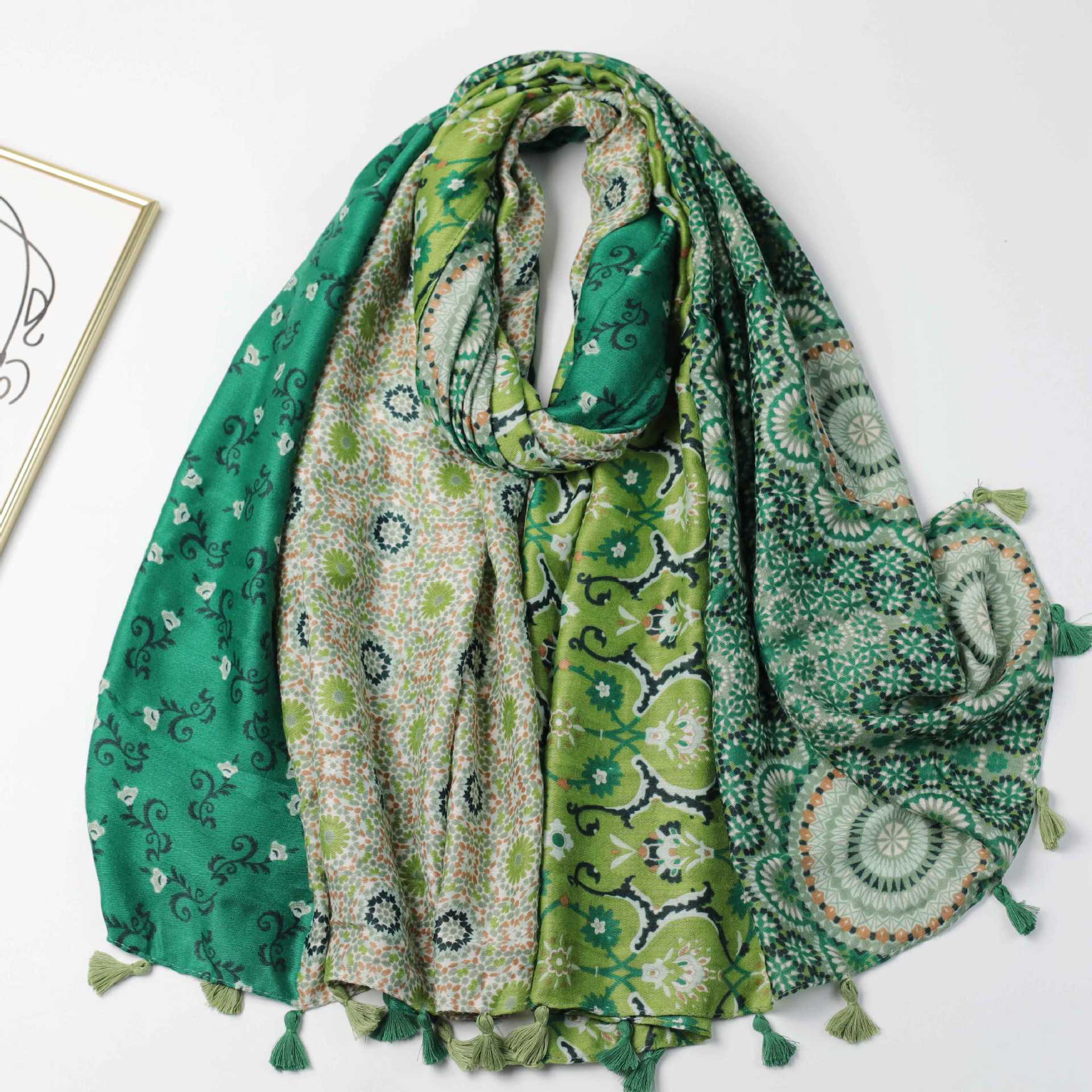 공장 판매 해외 무역 국경 4 철자 하이디 새틴 인쇄 긴 수건 여행 휴일 선 스크린 따뜻한 목도리
