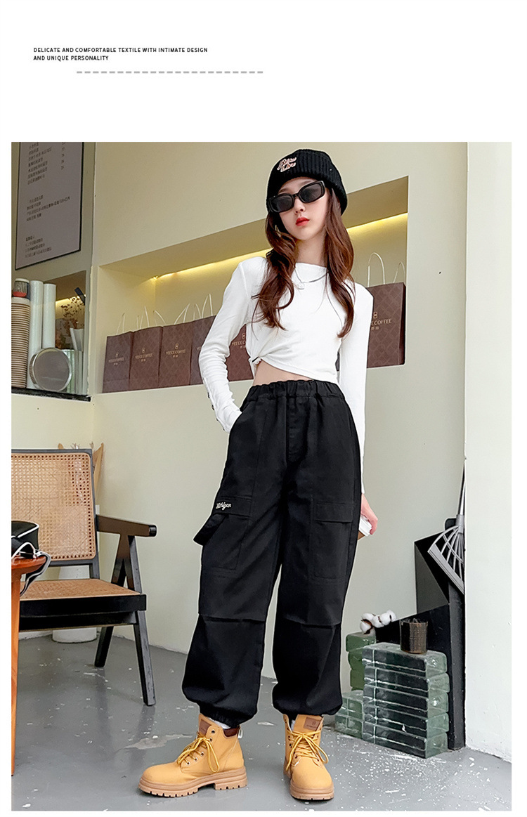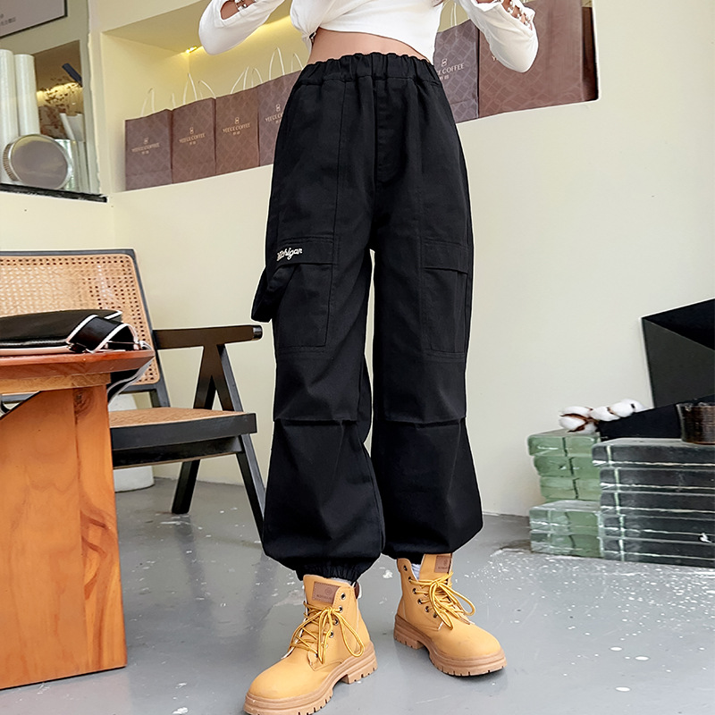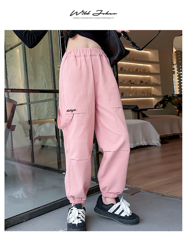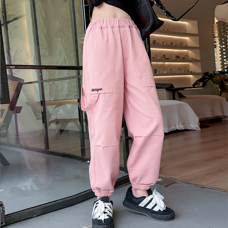여자 편지 바지 봄 새로운 중형 및 대형 어린이 유행 발목 묶은면 바지 한국식 서양식 어린이 바지 대외 무역 패션
