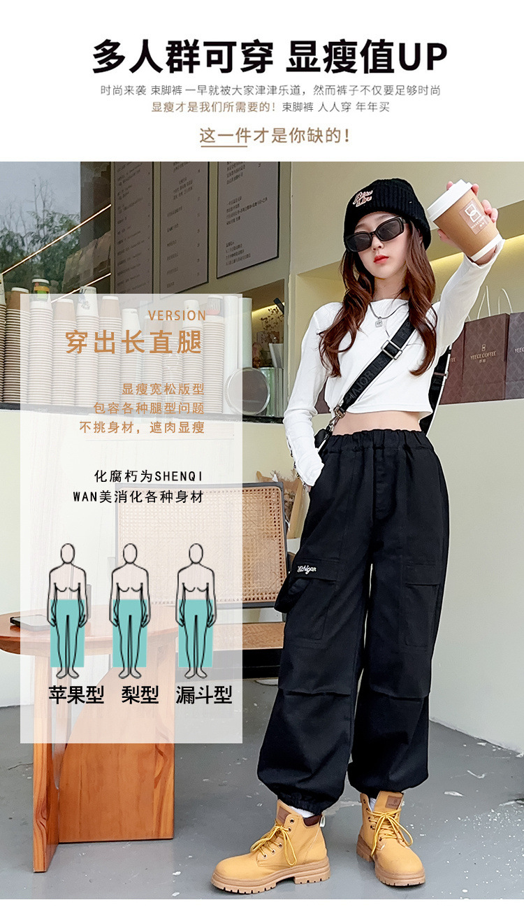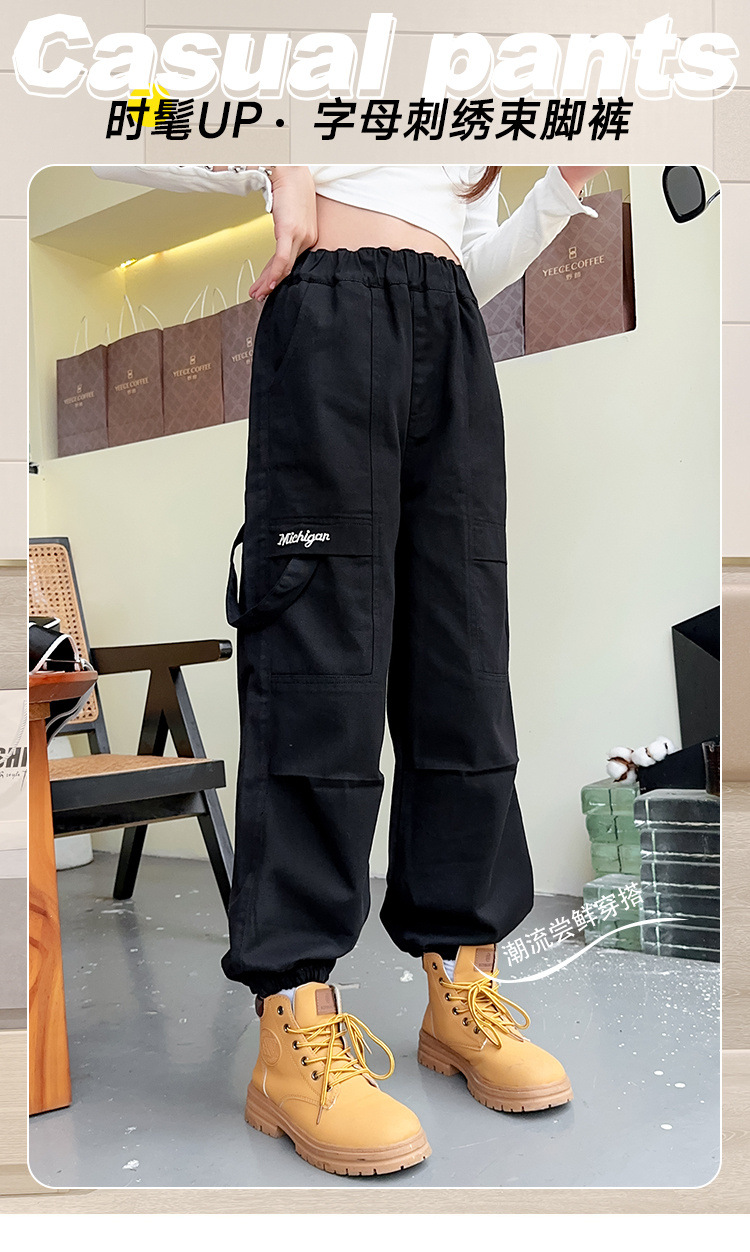 여자 편지 바지 봄 새로운 중형 및 대형 어린이 유행 발목 묶은면 바지 한국식 서양식 어린이 바지 대외 무역 패션스토어 가기