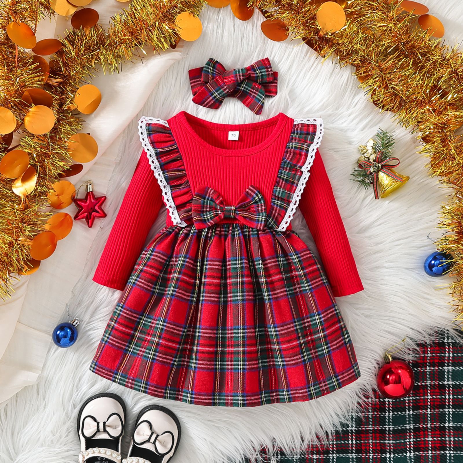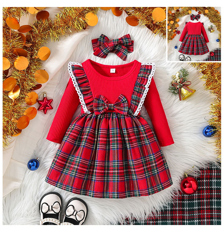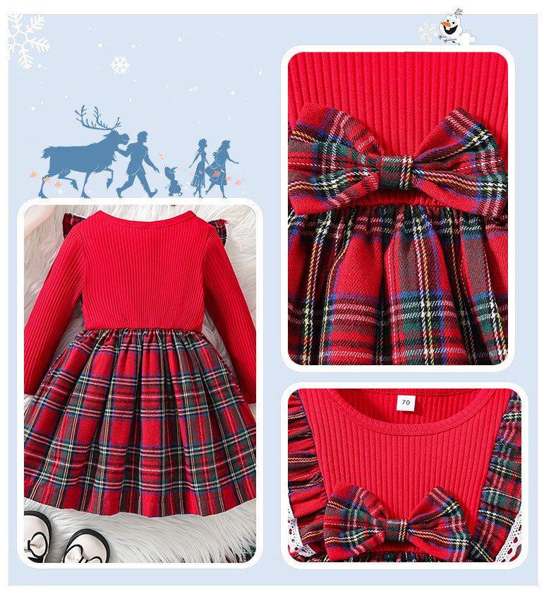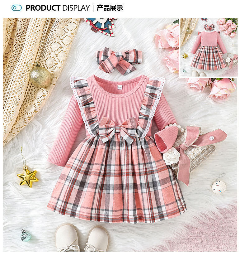 한국 스타일 봄과 가을 새로운 공주 원피스 활 긴 소매 원피스 달콤한 격자 무늬 레이스 어린이 쉬폰 스커트