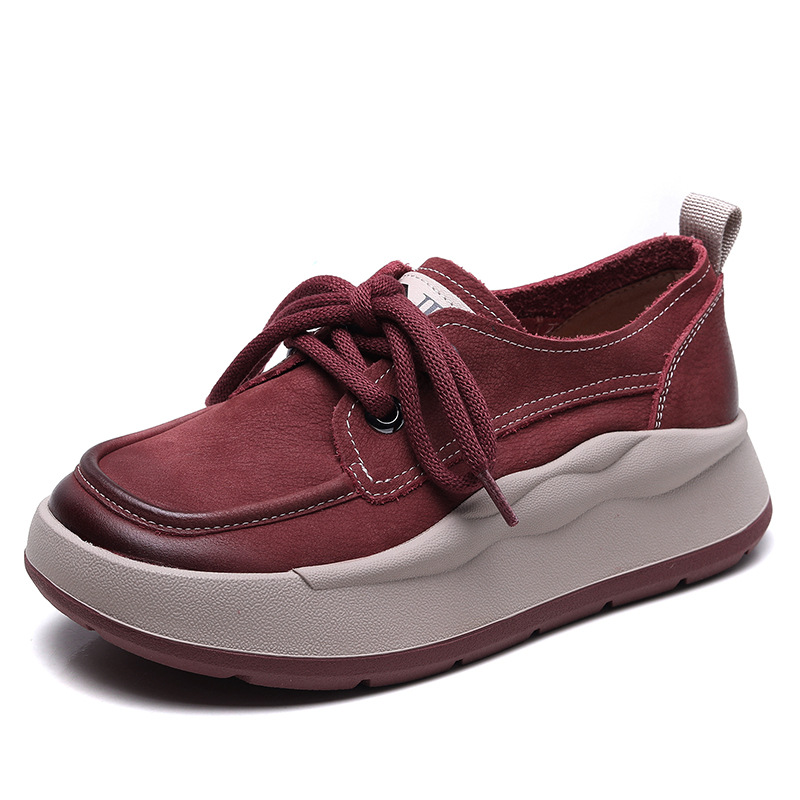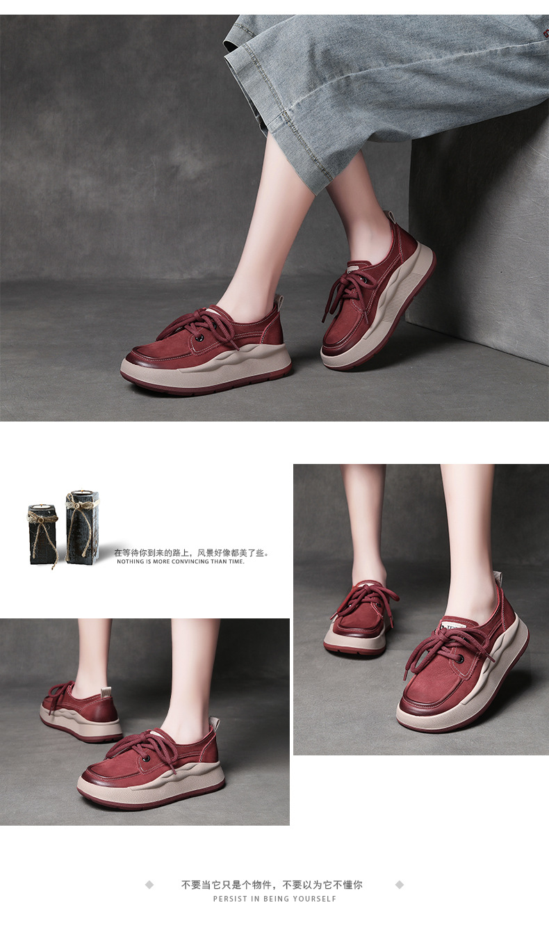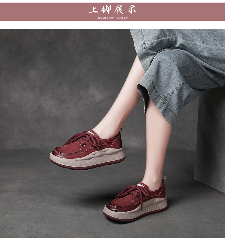 Cuique 2024 여름 새로운 플랫폼 신발 단층 신발 탑 레이어 소 가죽 로우 탑 탑 소프트 소프트 가죽 프로스트 레이스 업 캐주얼 여성 신발스토어 가기