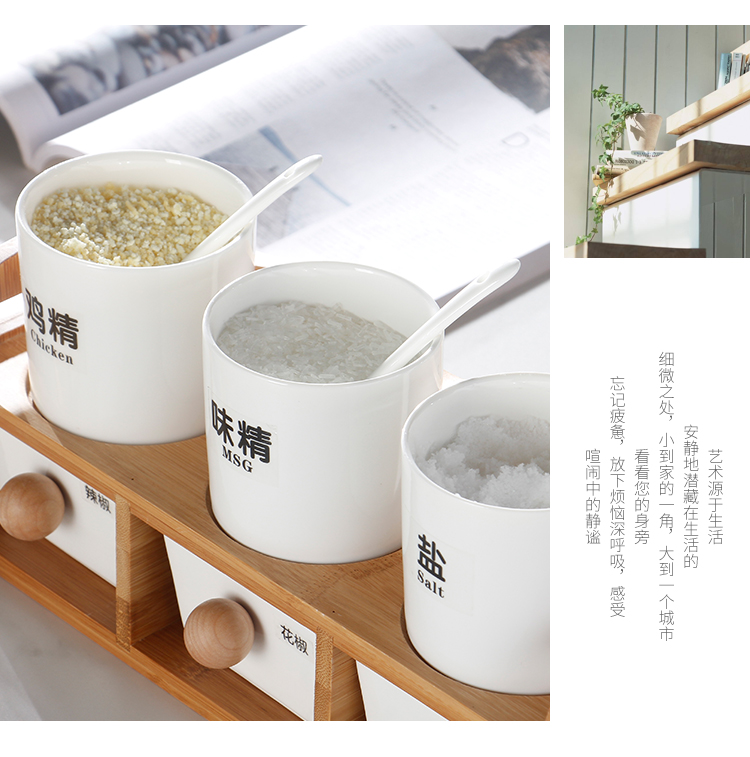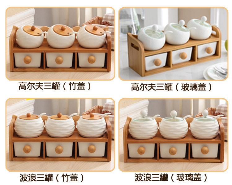 크리 에이 티브 세라믹 조미료 항아리 세트 홈 주방 조미료 상자 세트 일본식 더블 레이어 6 조각 조미료 병 솔트핑스토어 가기