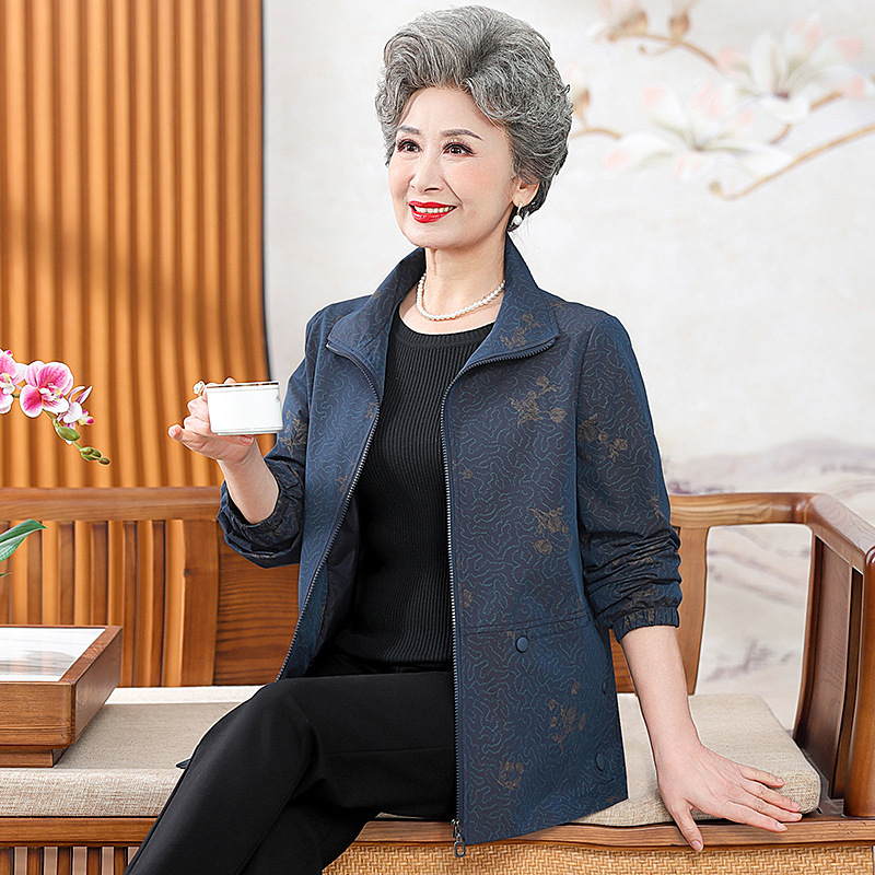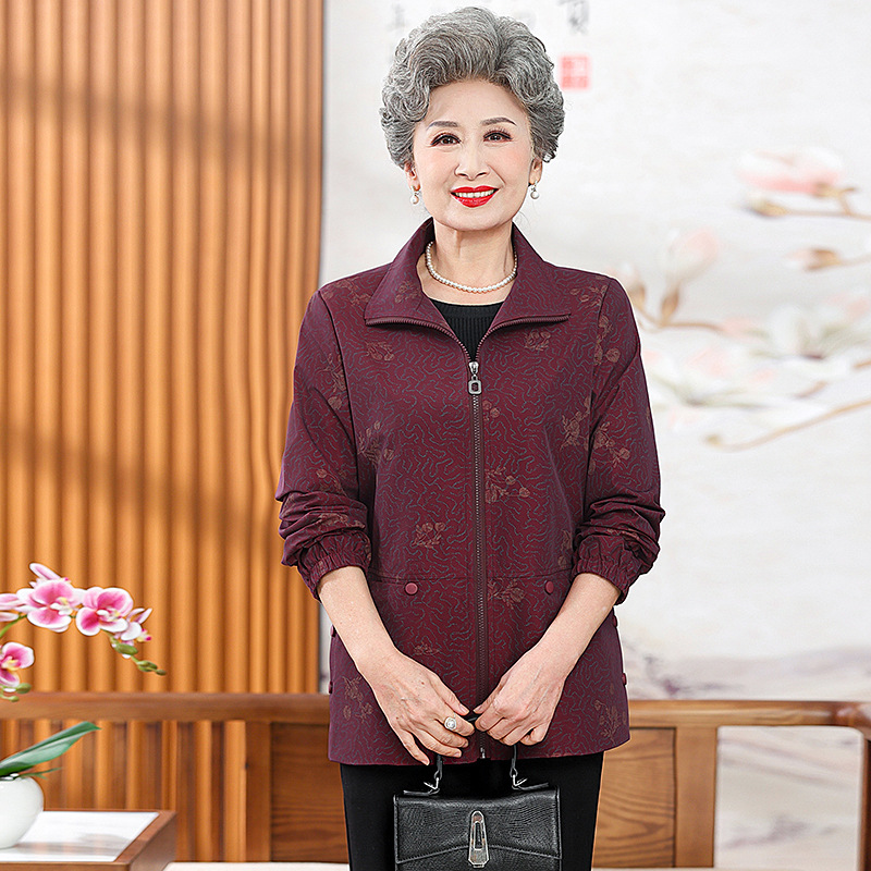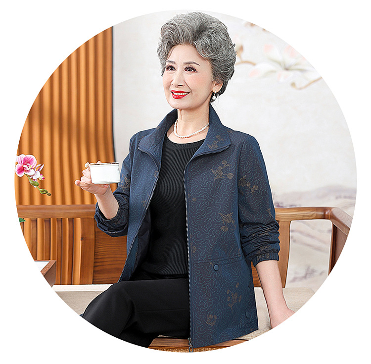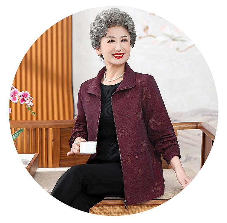 할머니 봄 윈드 브레이커 60 세 70 세 여성 어머니 자켓 짧은 늙은 아가씨 봄과 가을 코트 새로운스토어 가기