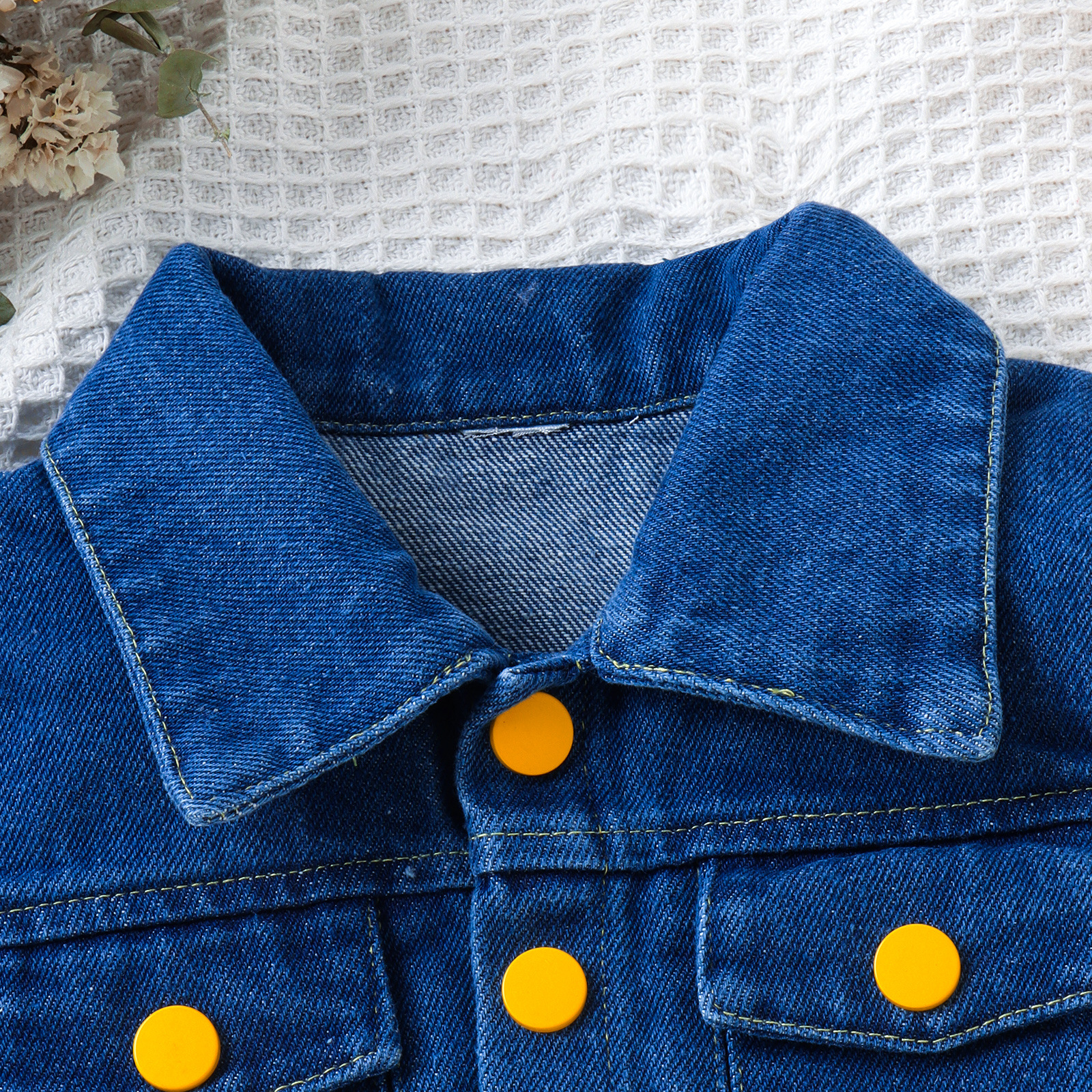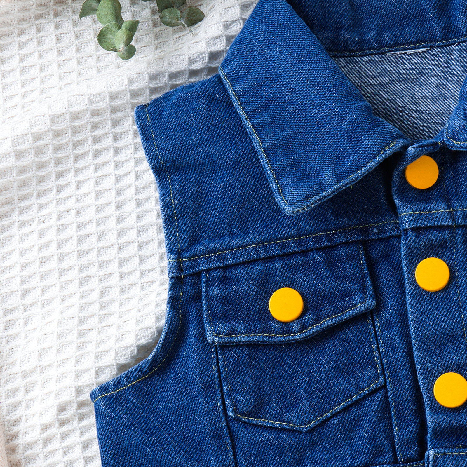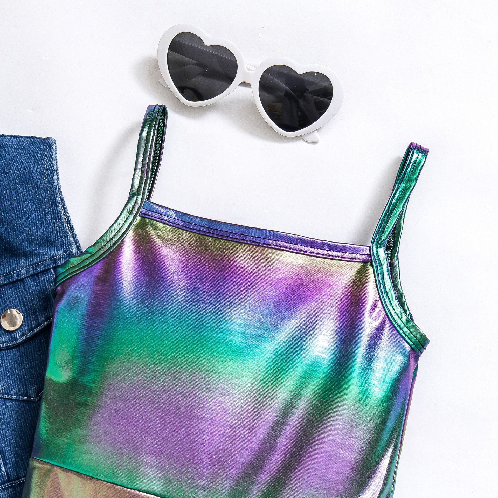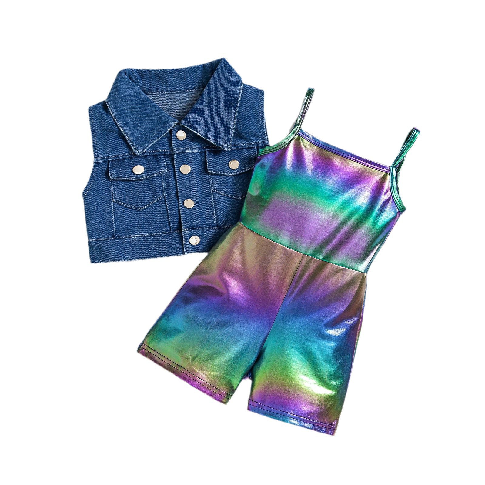 바옥신 아동복 국경 유럽 및 미국 패션 여름 중소 소녀 솔리드 컬러 핏 스트립 점프 수트 데님 조끼 세트