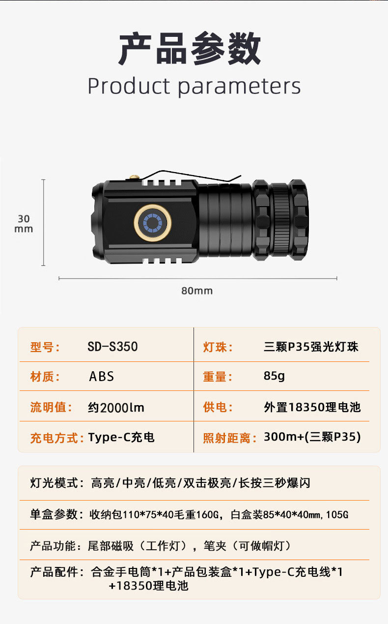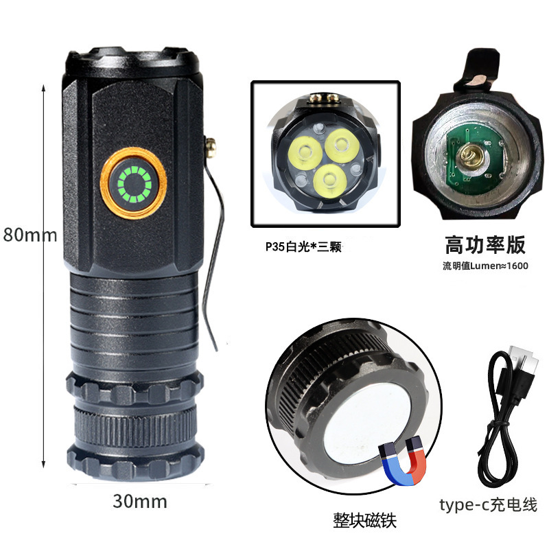 세 눈 손전등 작은 강한 빛 led 야외 충전식 휴대용 작업 빛 슈퍼 밝은 흰색 레이저 미니 클립 캡 빛스토어 가기