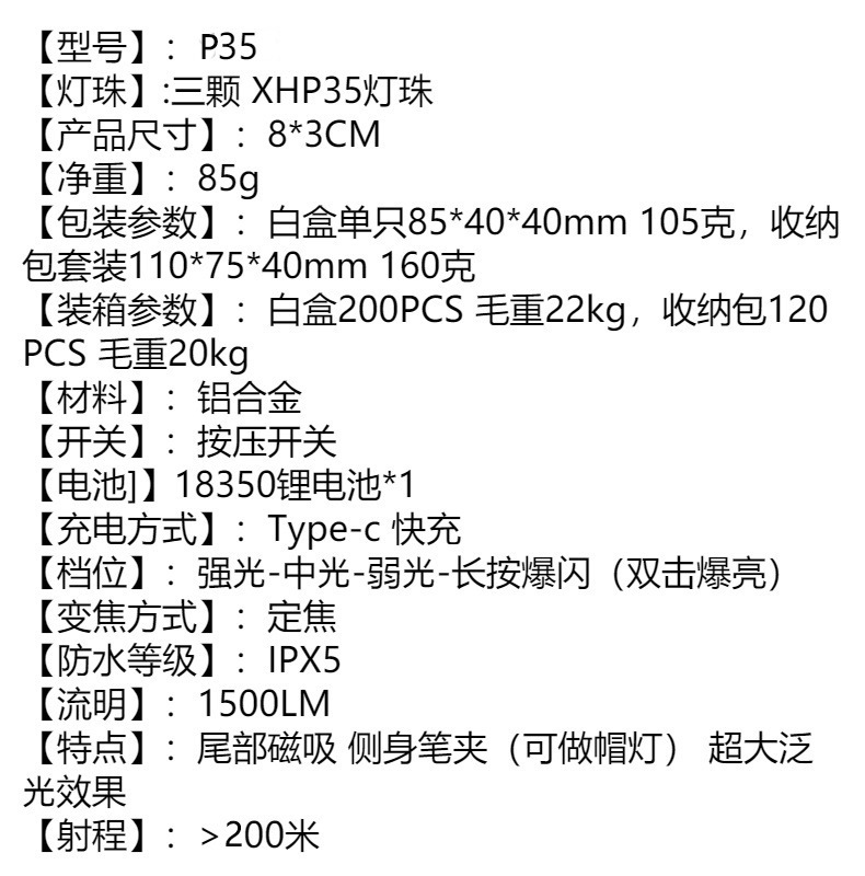 • 고출력 버전 [3 눈 램프] + USB 케이블 + 배터리