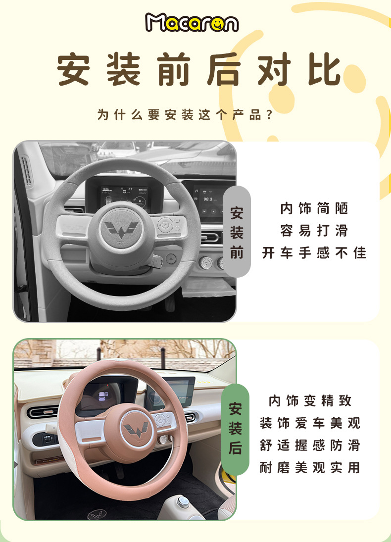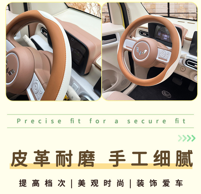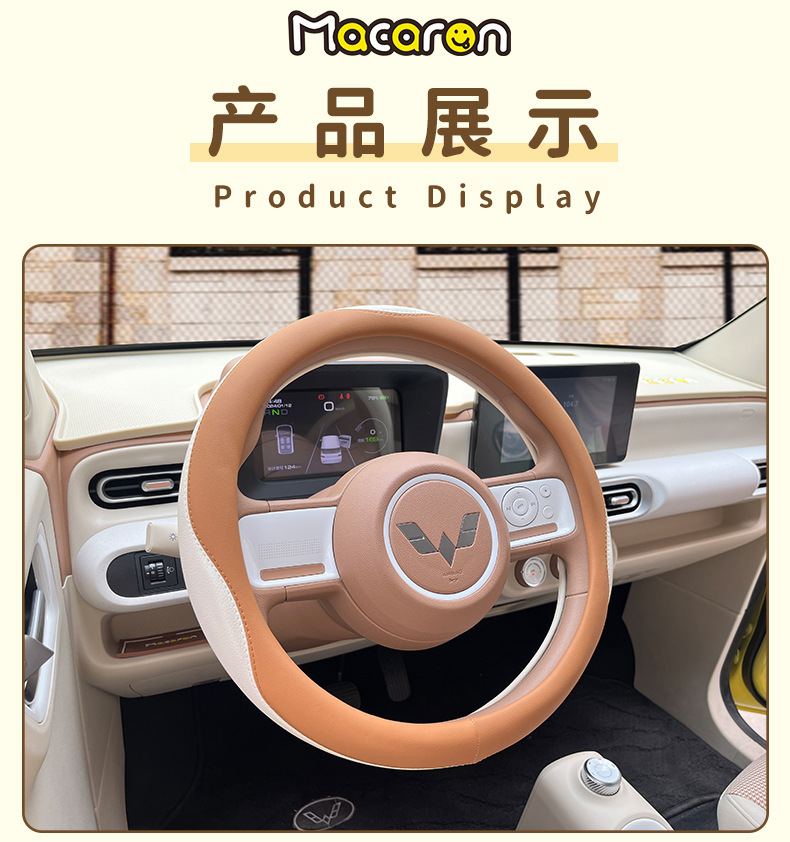 Wuling 마카롱 3 세대 자동차 스티어링 휠 커버 사계절 자동차 핸들 커버 수정 가죽 보호 커버에 적합스토어 가기