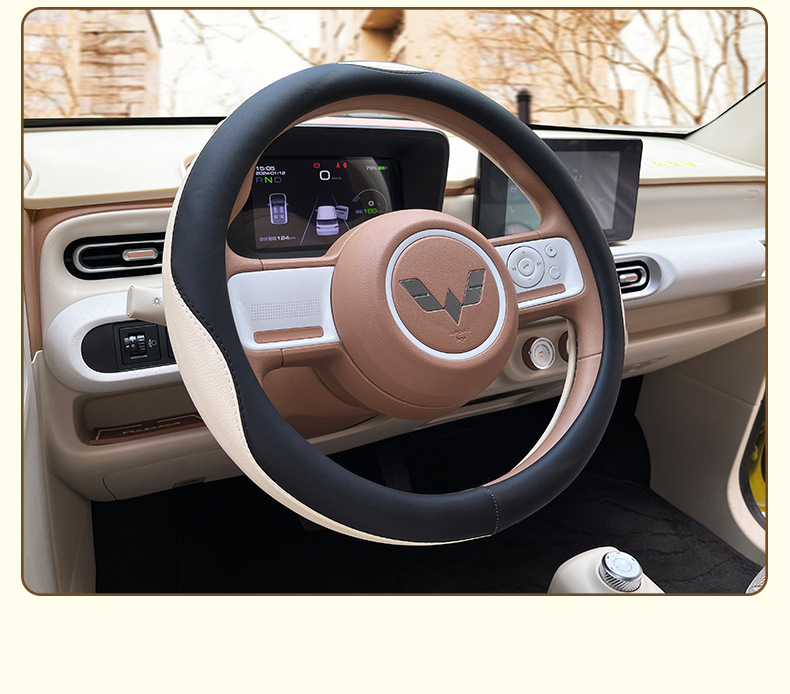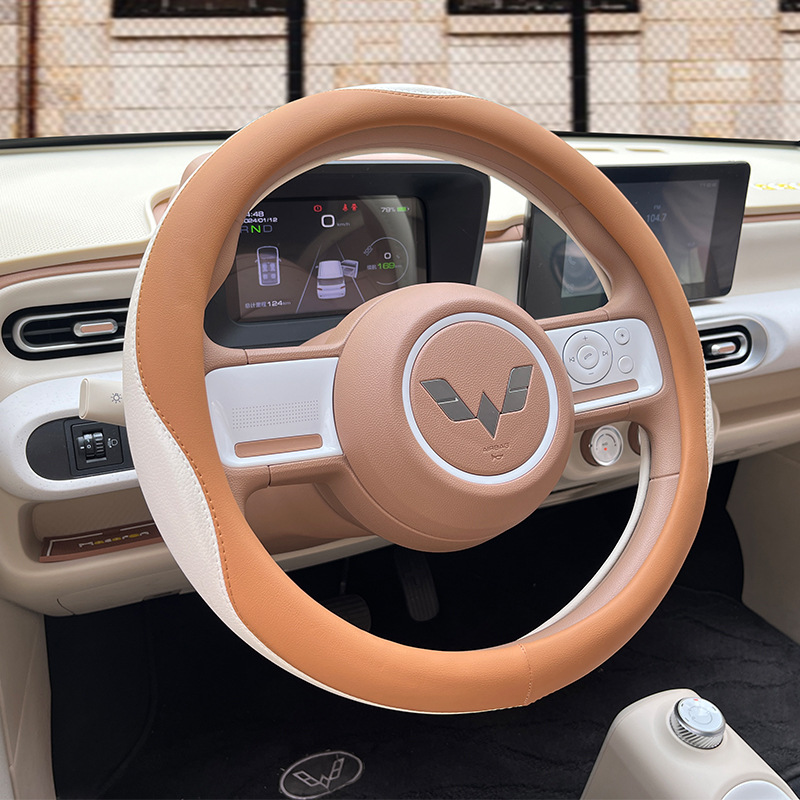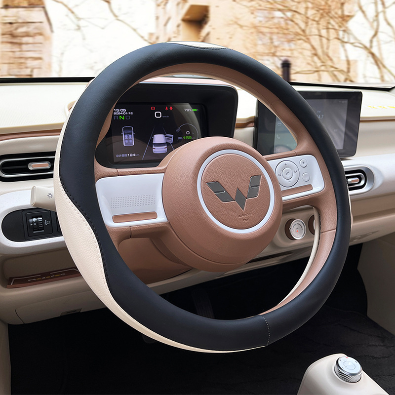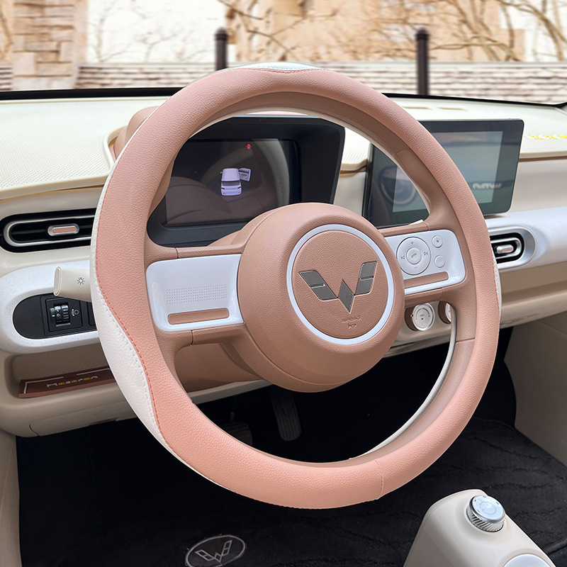 Wuling 마카롱 3 세대 자동차 스티어링 휠 커버 사계절 자동차 핸들 커버 수정 가죽 보호 커버에 적합