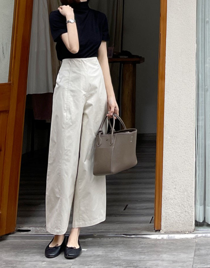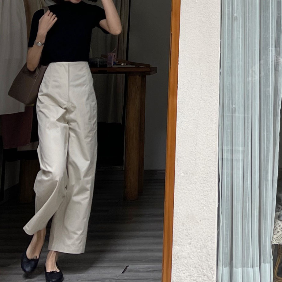 흰색 높은 허리 좁은 직선 우아한 넓은 다리 바지 여성의 봄과 가을 얇은 캐주얼 드레이핑 크롭 바지 세트 바지스토어 가기