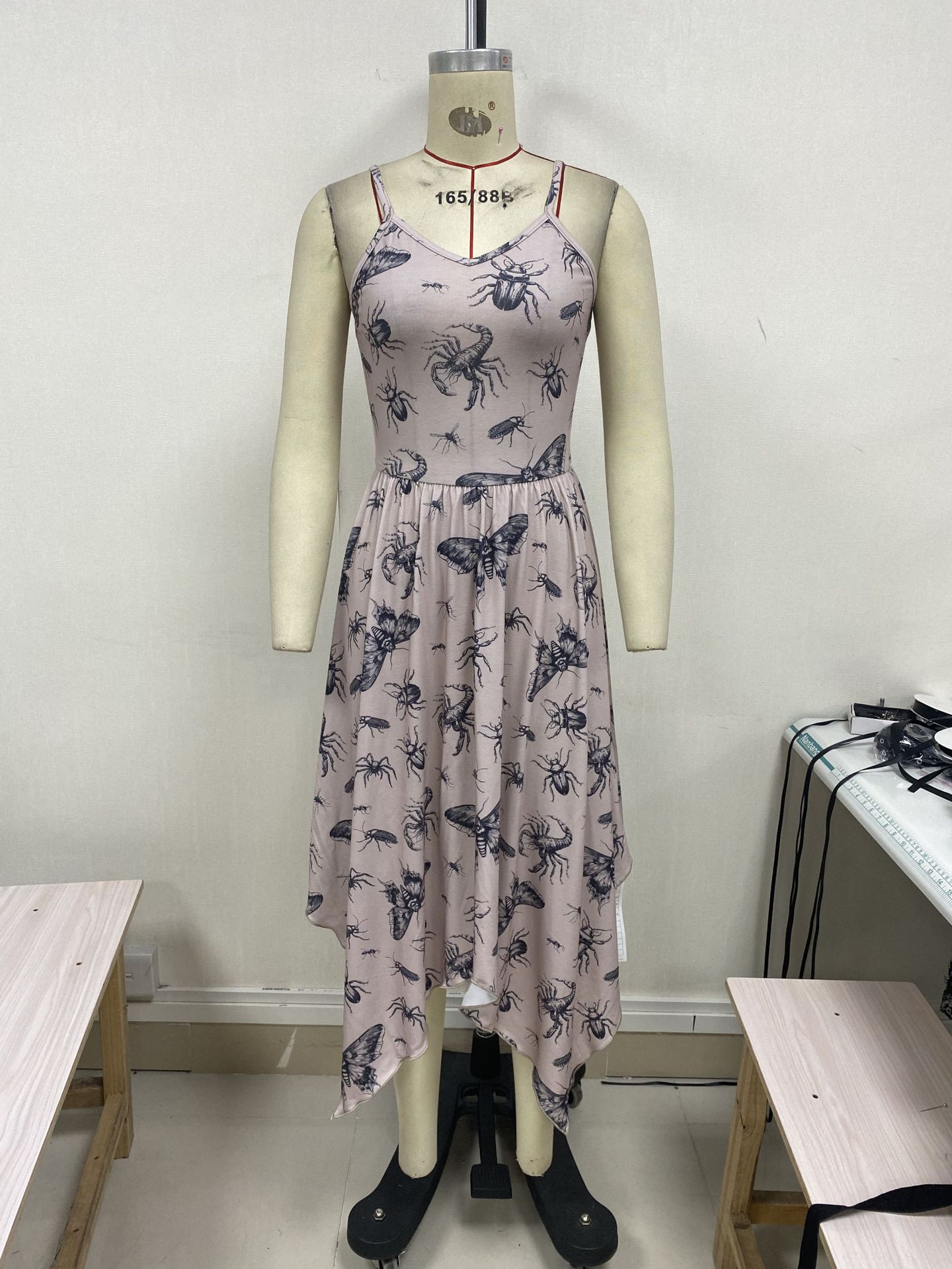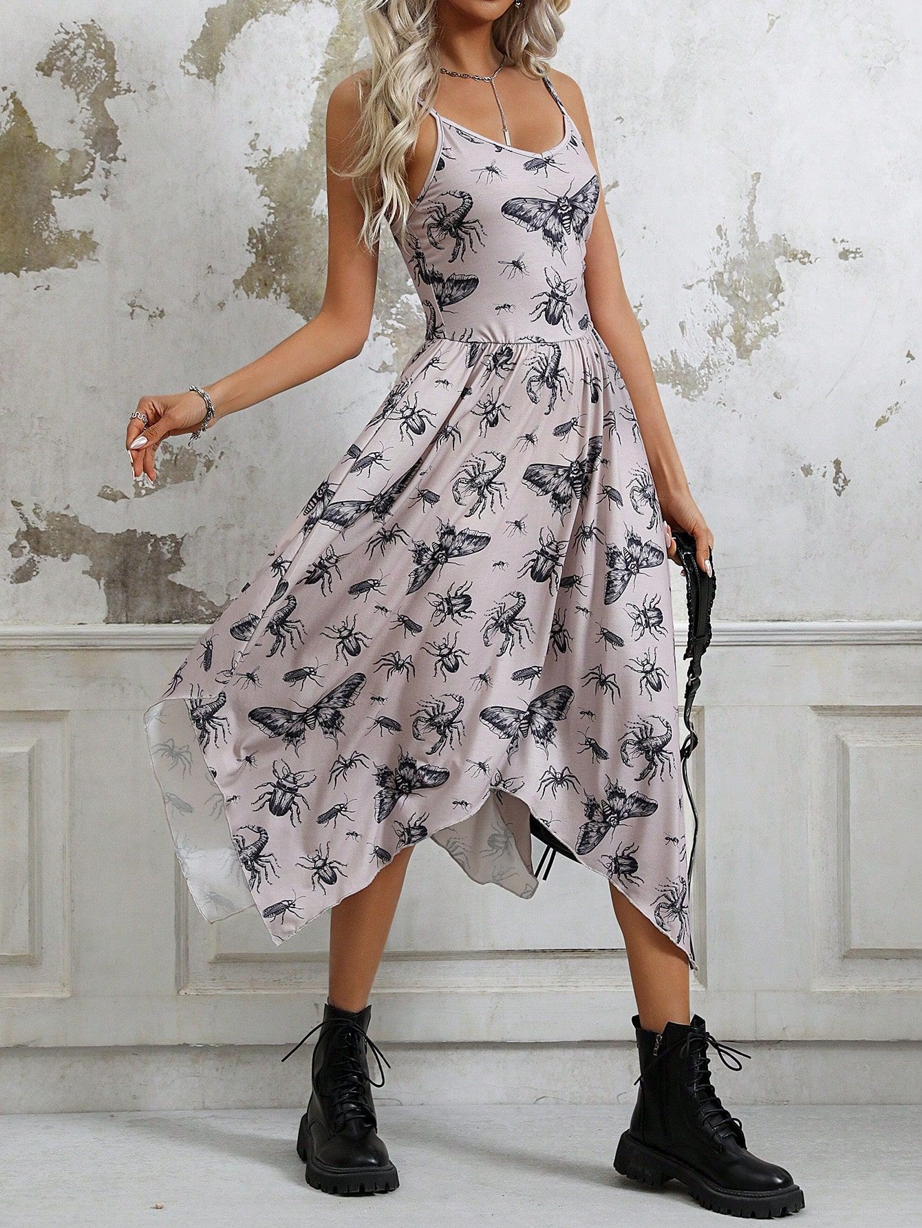 여성용 고딕 빈티지 다크 프린트 스트랩리스 원피스