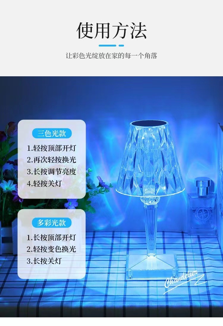 공장 직접 충전 터치 넷 레드 다이아몬드 테이블 램프 침대 옆 침실 LED 천장 램프 워터 드롭 팻 나이트 라이트