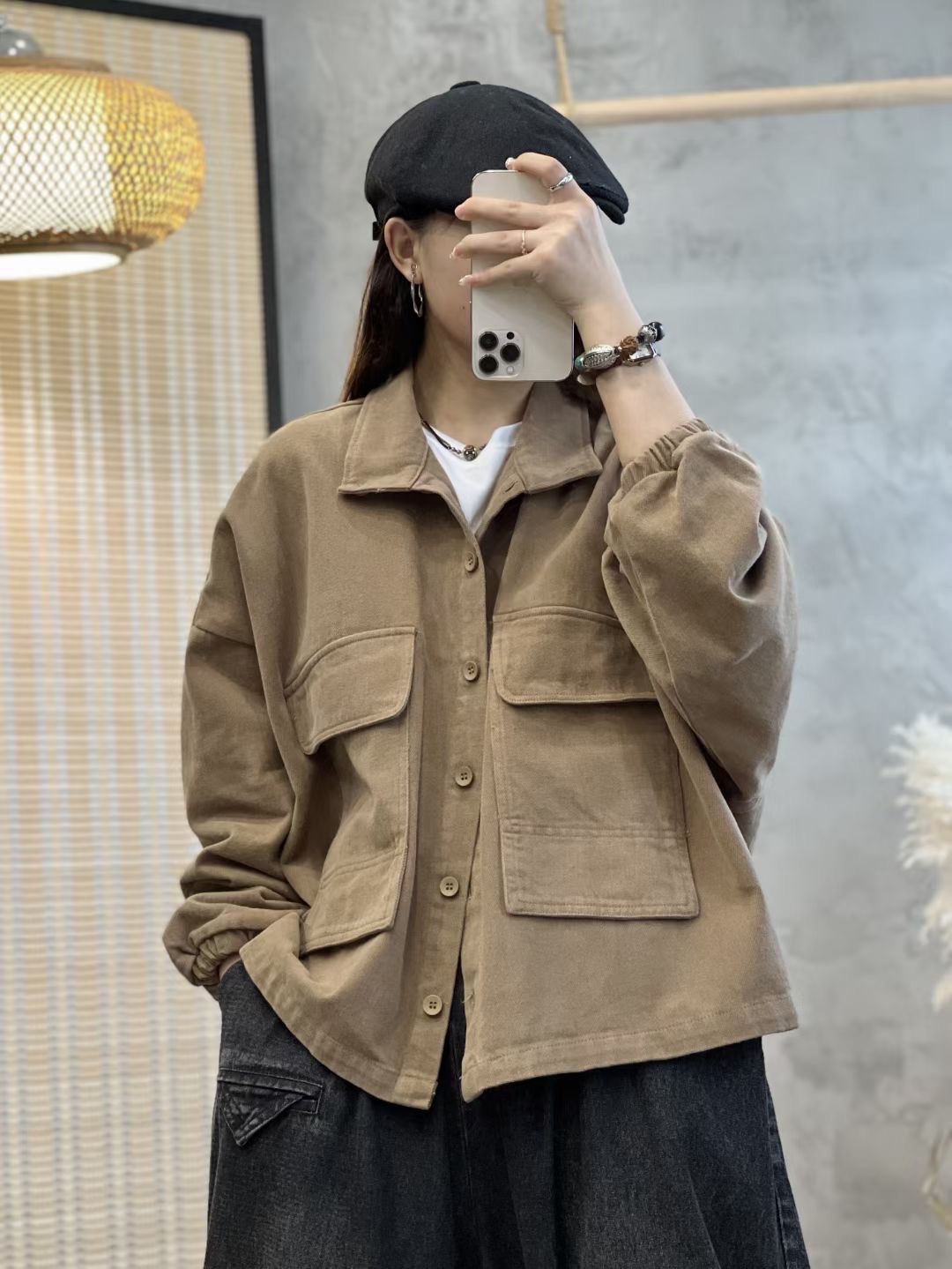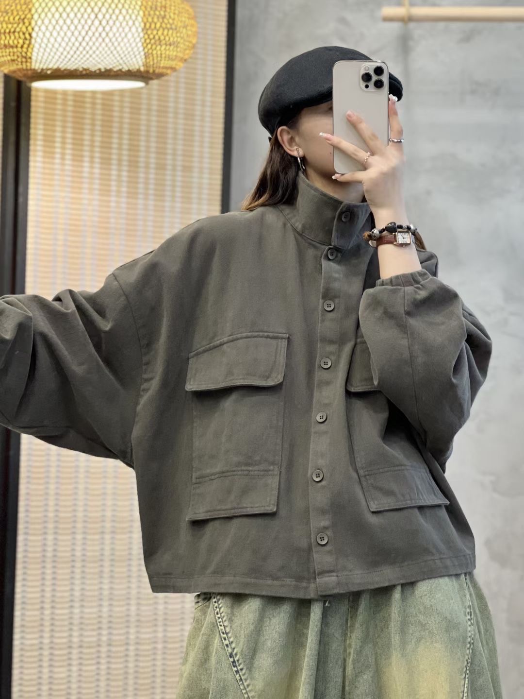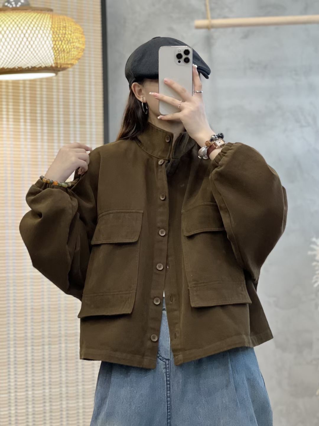 캐주얼 코튼 단색 플러스 사이즈 코트 봄과 가을 옷깃 싱글 브레스트 느슨한 대형 배팅 슬리브 탑 재킷스토어 가기