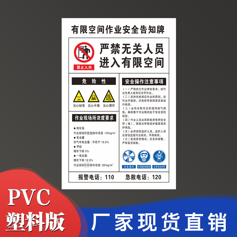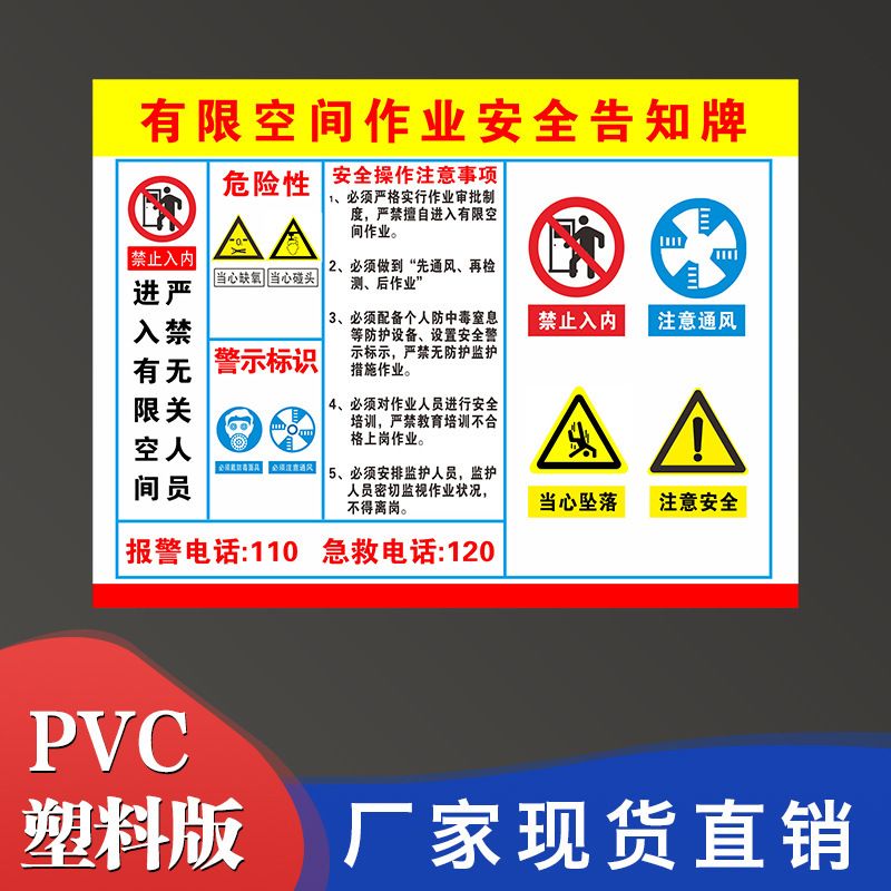 • 60 * 80PVC 먼지 산업 위험 알림 카드 1 * 표준