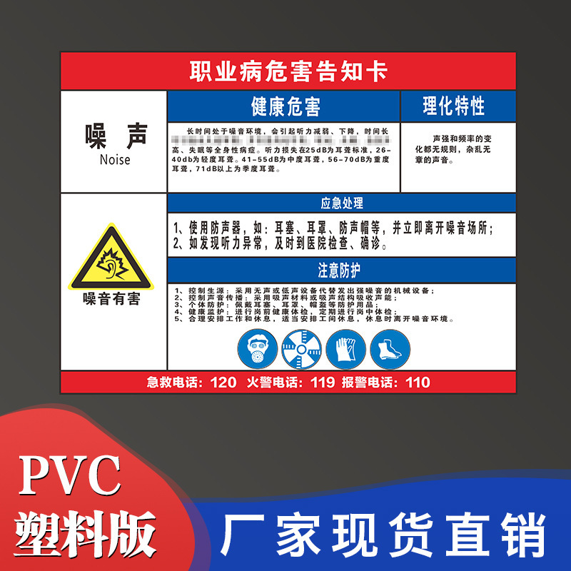 • 60 * 80PVC 소음 작업 위험 알림 카드 1 * 표준