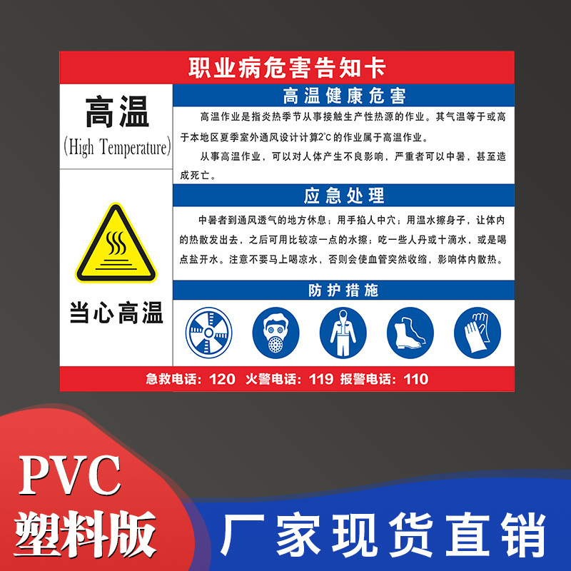 • 30 * 40PVC 고온 직업 위험 알림 카드 1 * 표준