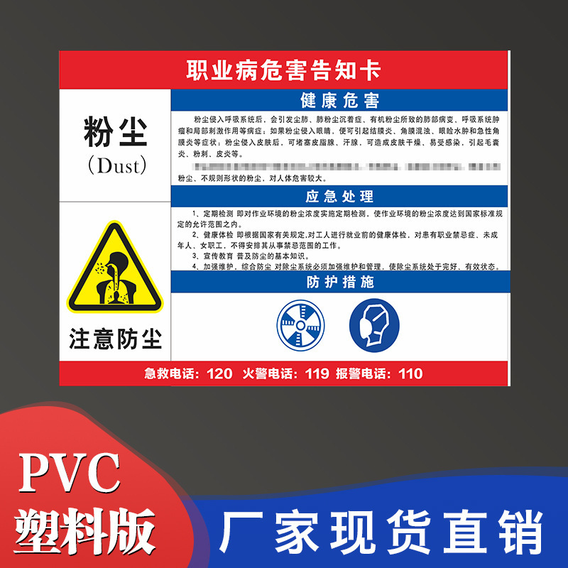 • 40 * 60PVC 먼지 산업 위험 알림 카드 1 * 표준