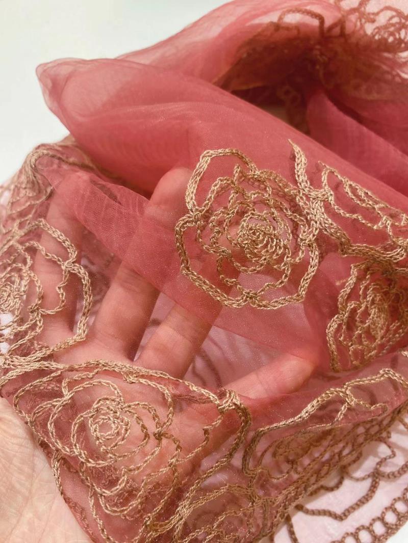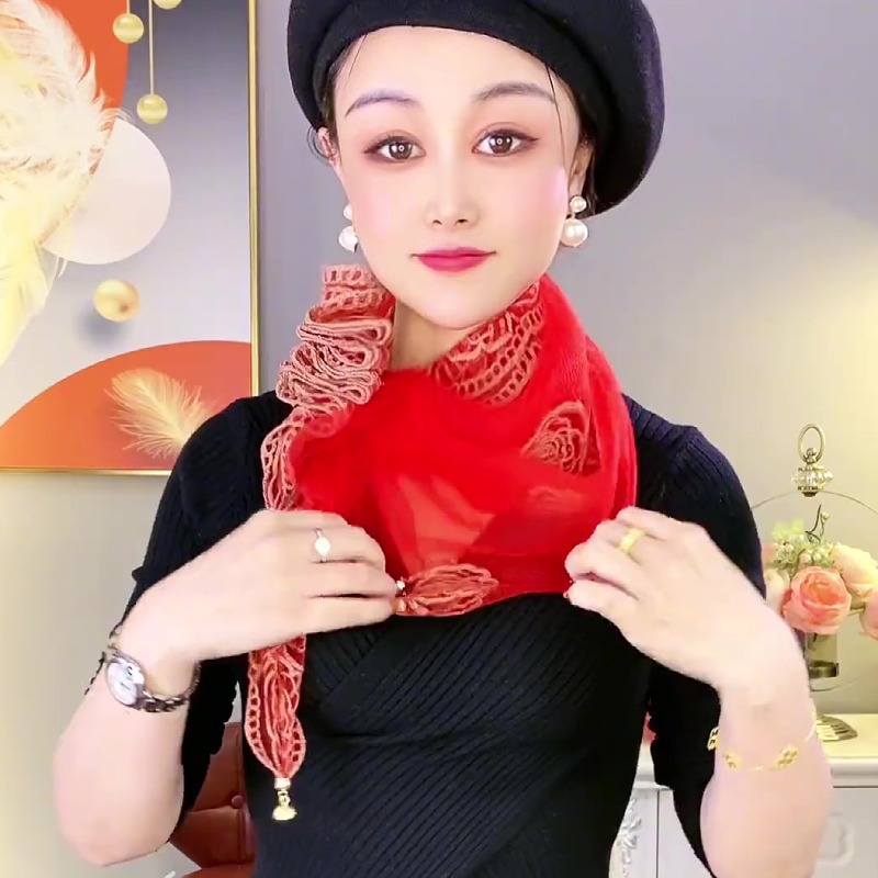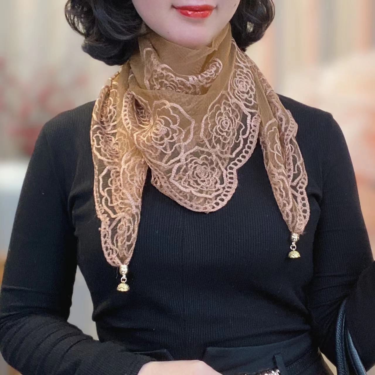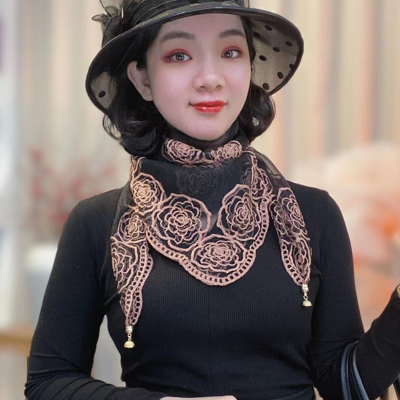 80*80 로즈 자수 스퀘어 스카프 마그네틱 버클 아름다운 스카프 다기능 스카프 세련된 올 매치 얇은 스카프 여성용