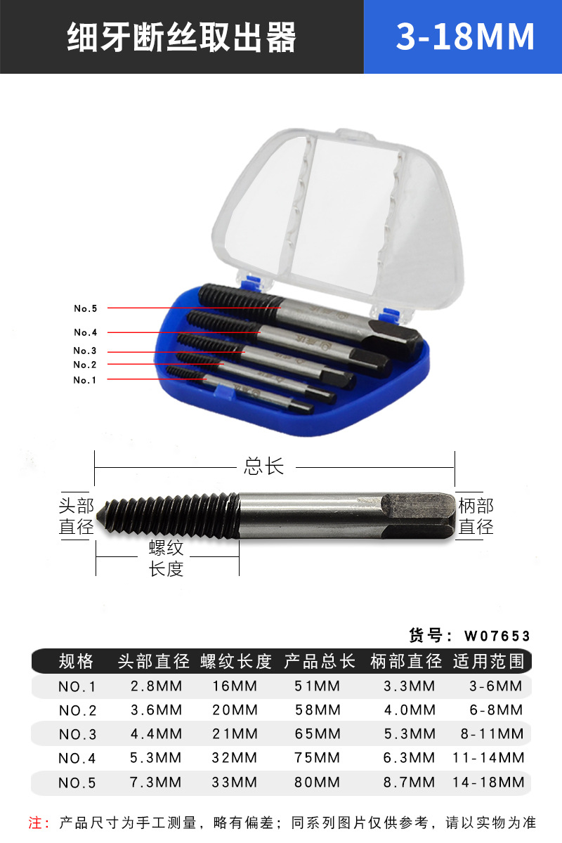• 굵은 나사 끊어진 와이어 추출기(W07651)