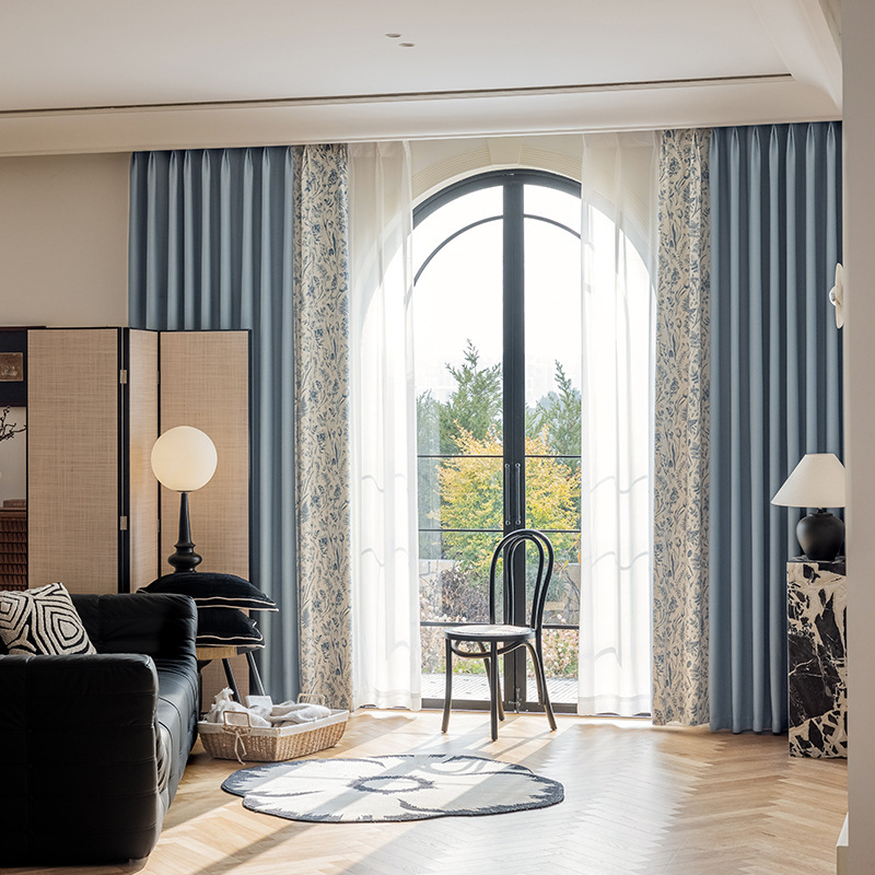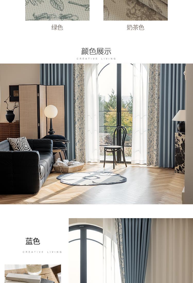프랑스 인쇄 커튼 2024 새로운 전체 음영 침실 바느질 가벼운 고급 고급 고급 현대 간단한 거실 발코니