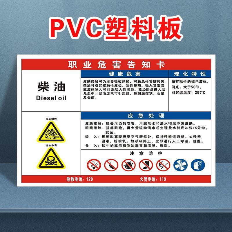 • 60 * 80PVC 플라스틱 보드 디젤 알림 카드 1 * 표준