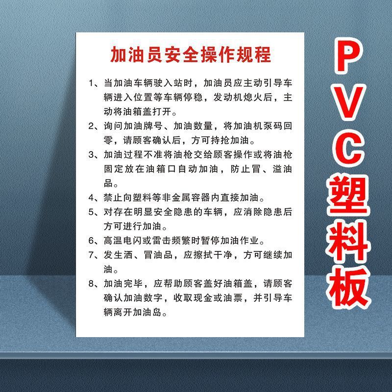 • 60 * 80PVC 플라스틱 보드 가솔린 알림 카드 1 * 표준