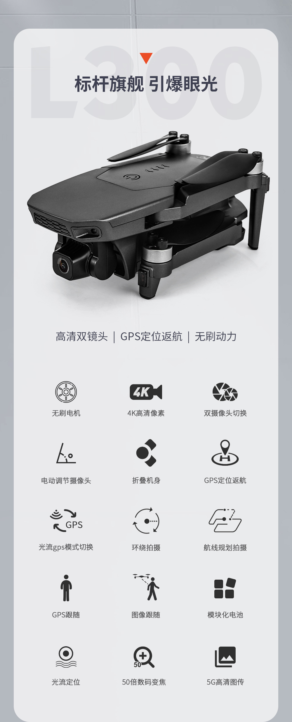 국경 간 접이식 브러시리스 GPS UAV L300 항공 사진 4K HD 4 축 항공기 자동 복귀 원격 제어스토어 가기