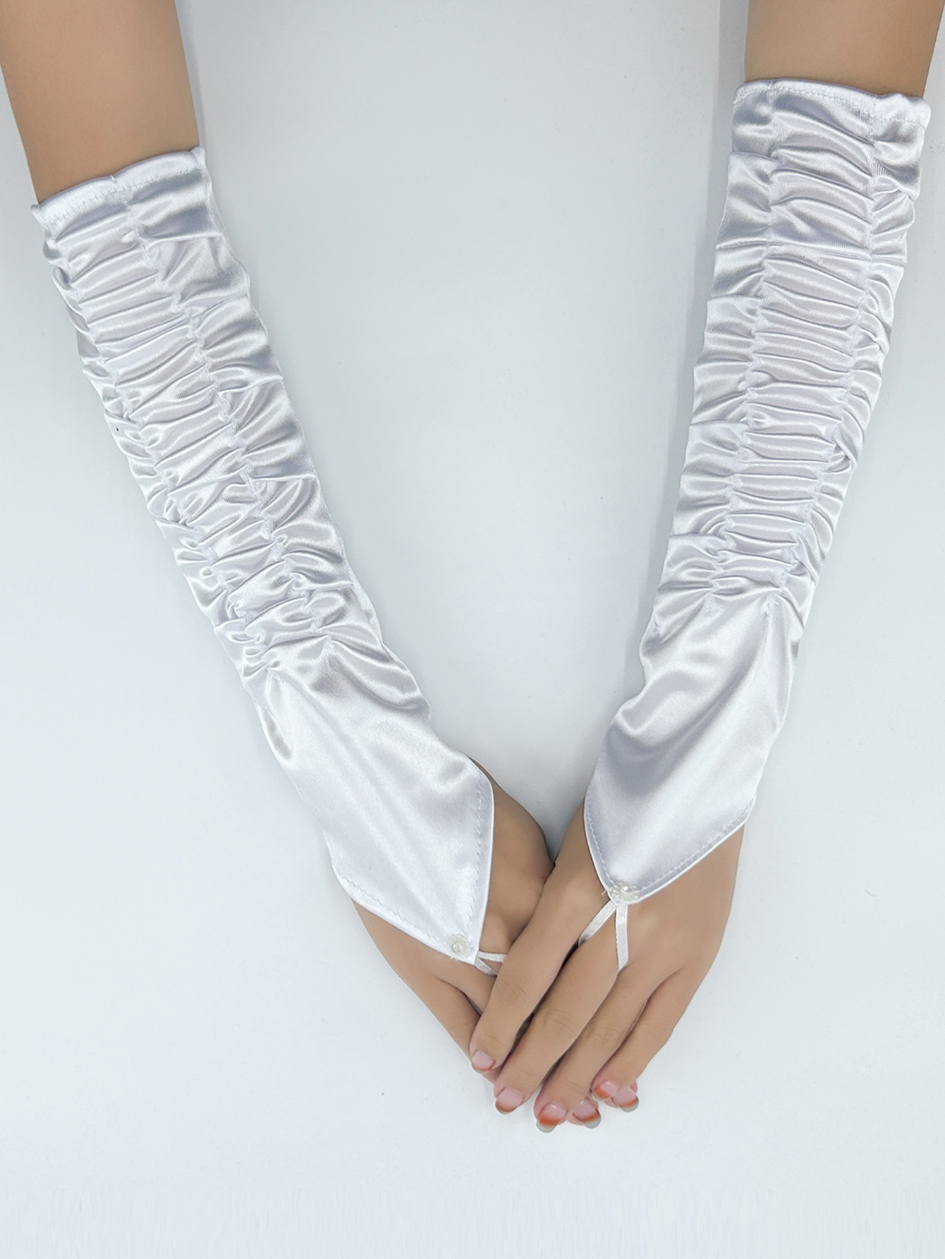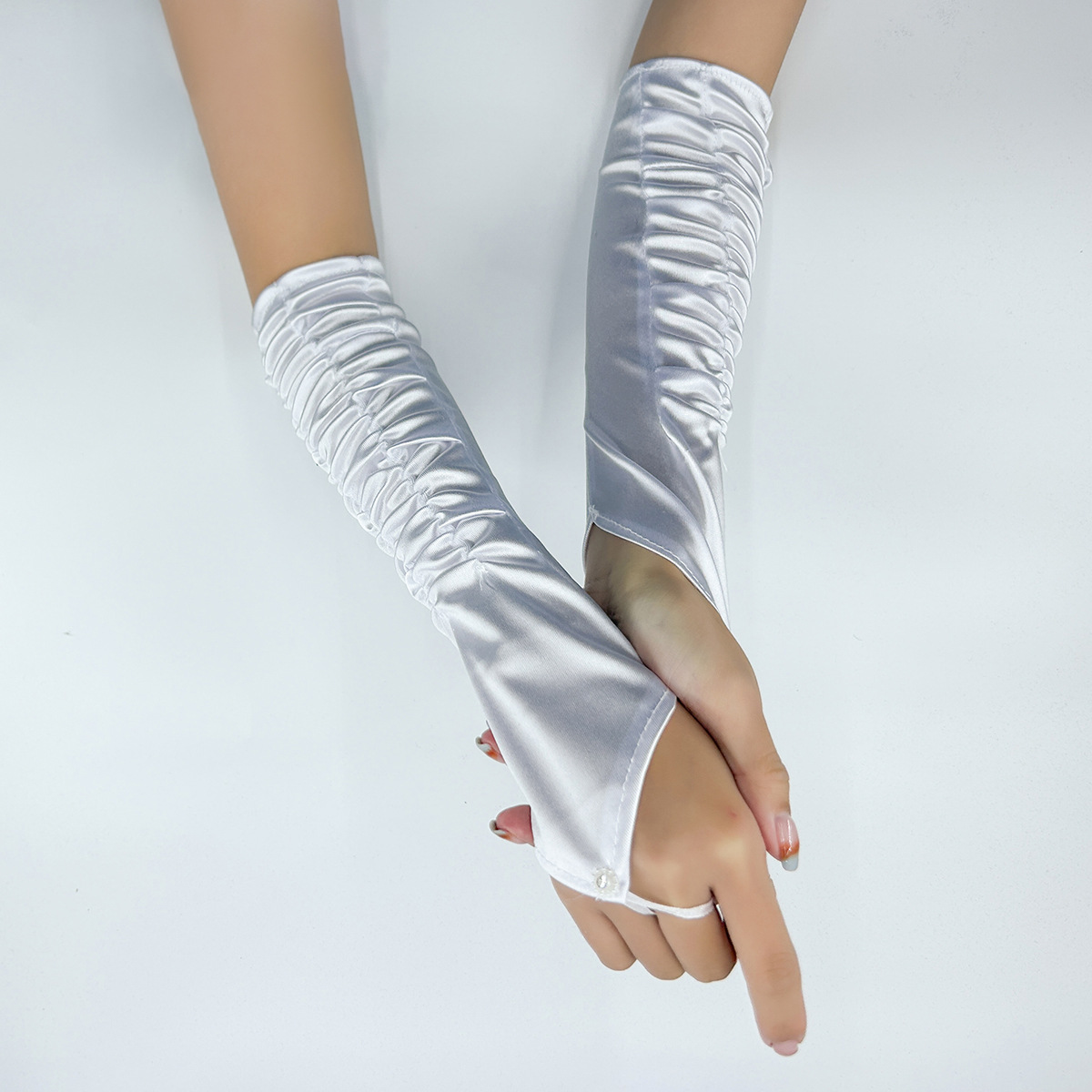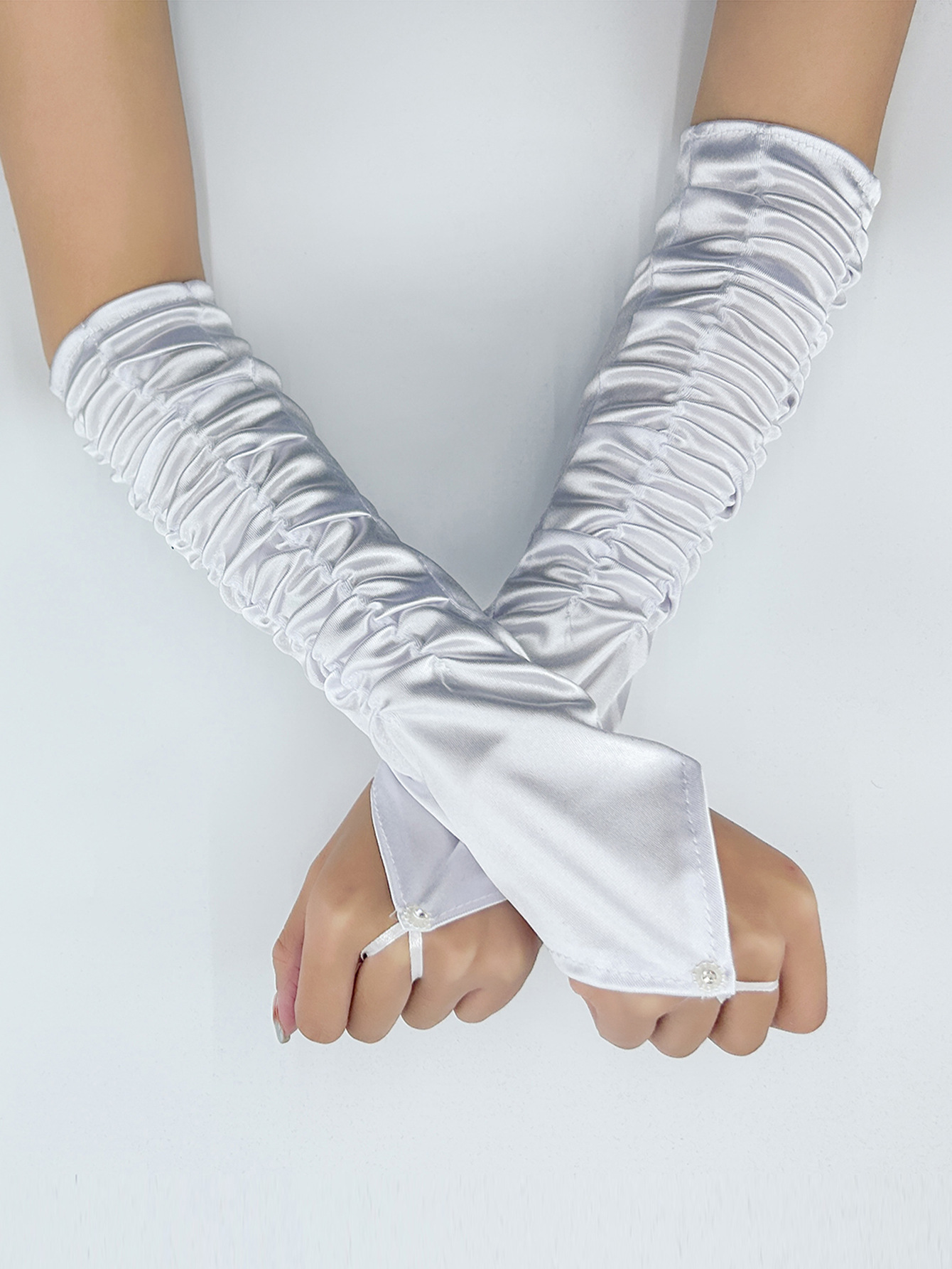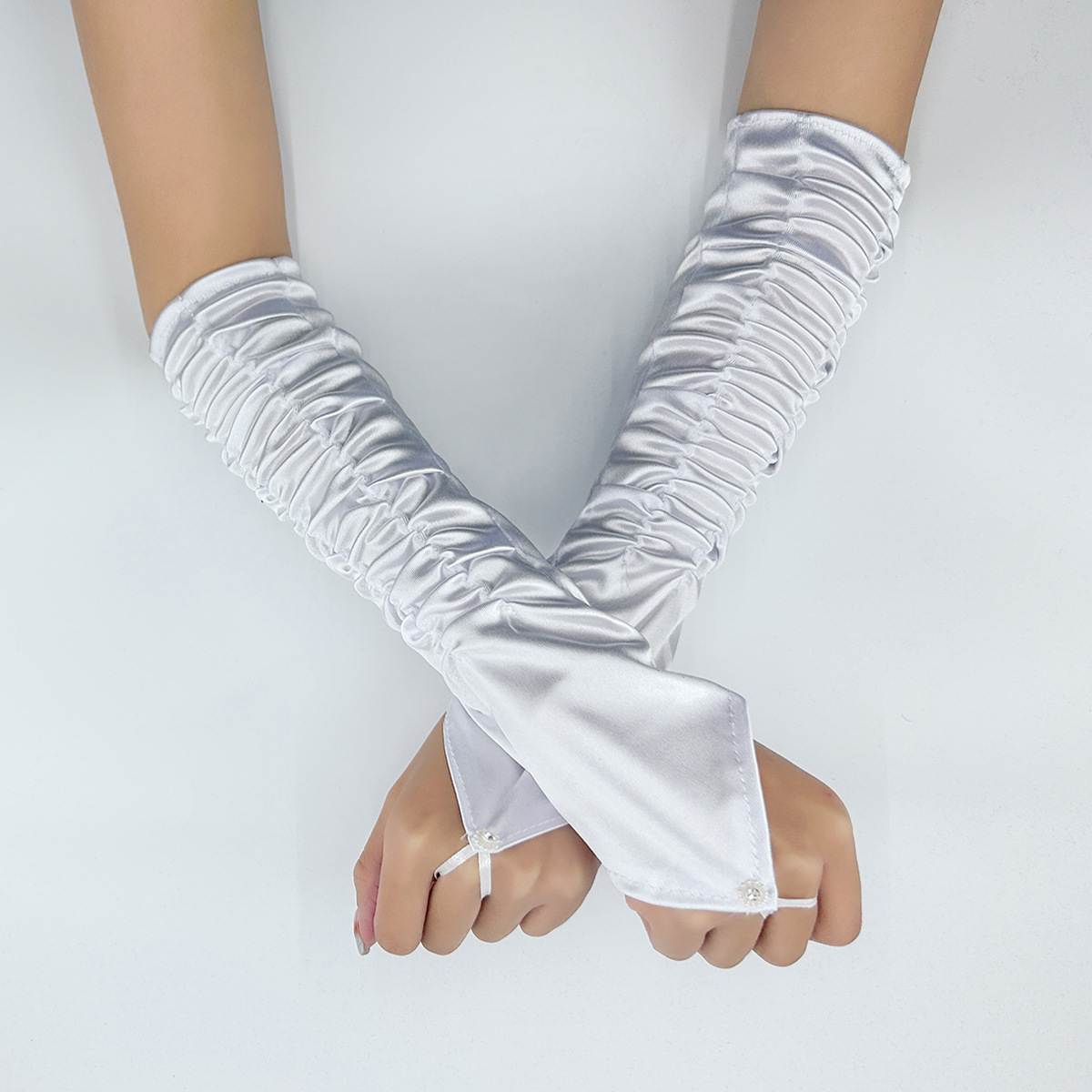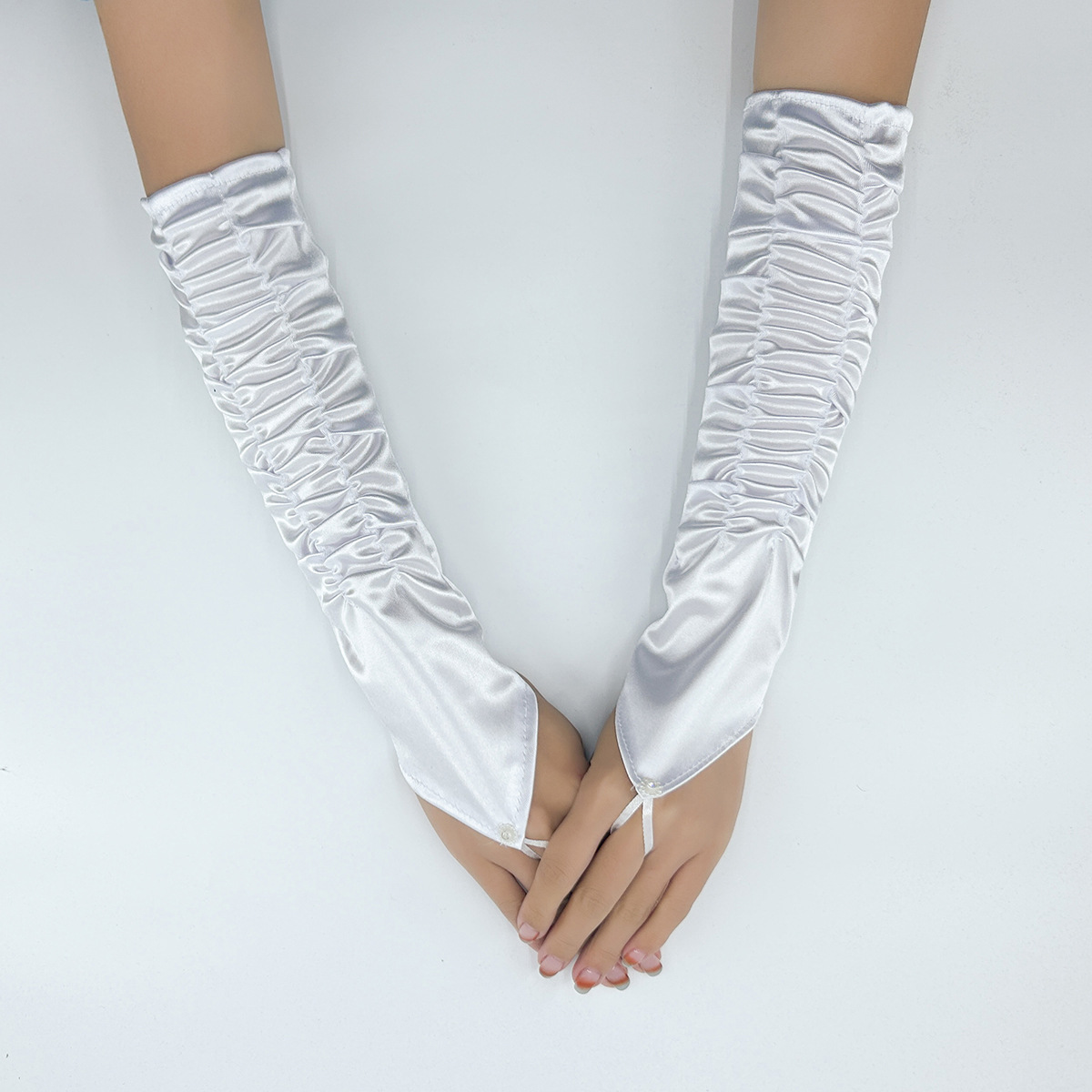 국경 간 새틴 주름 신부 장갑 새틴 가방 손가락 장갑 결혼식 결혼식 무대 파티 패션 장갑 도매