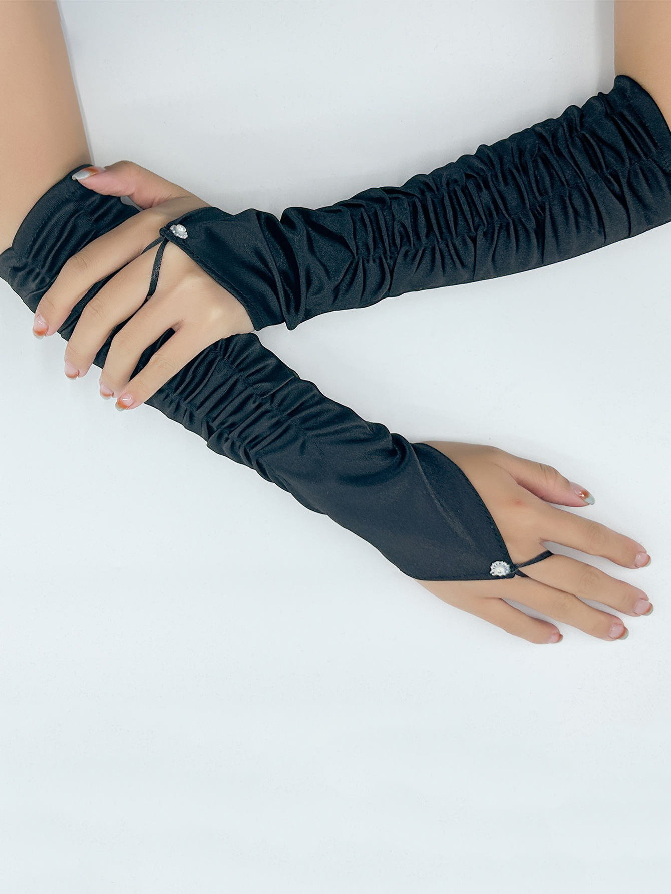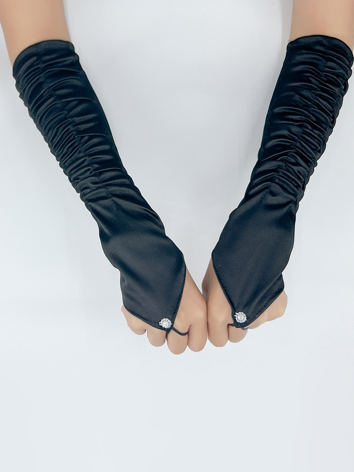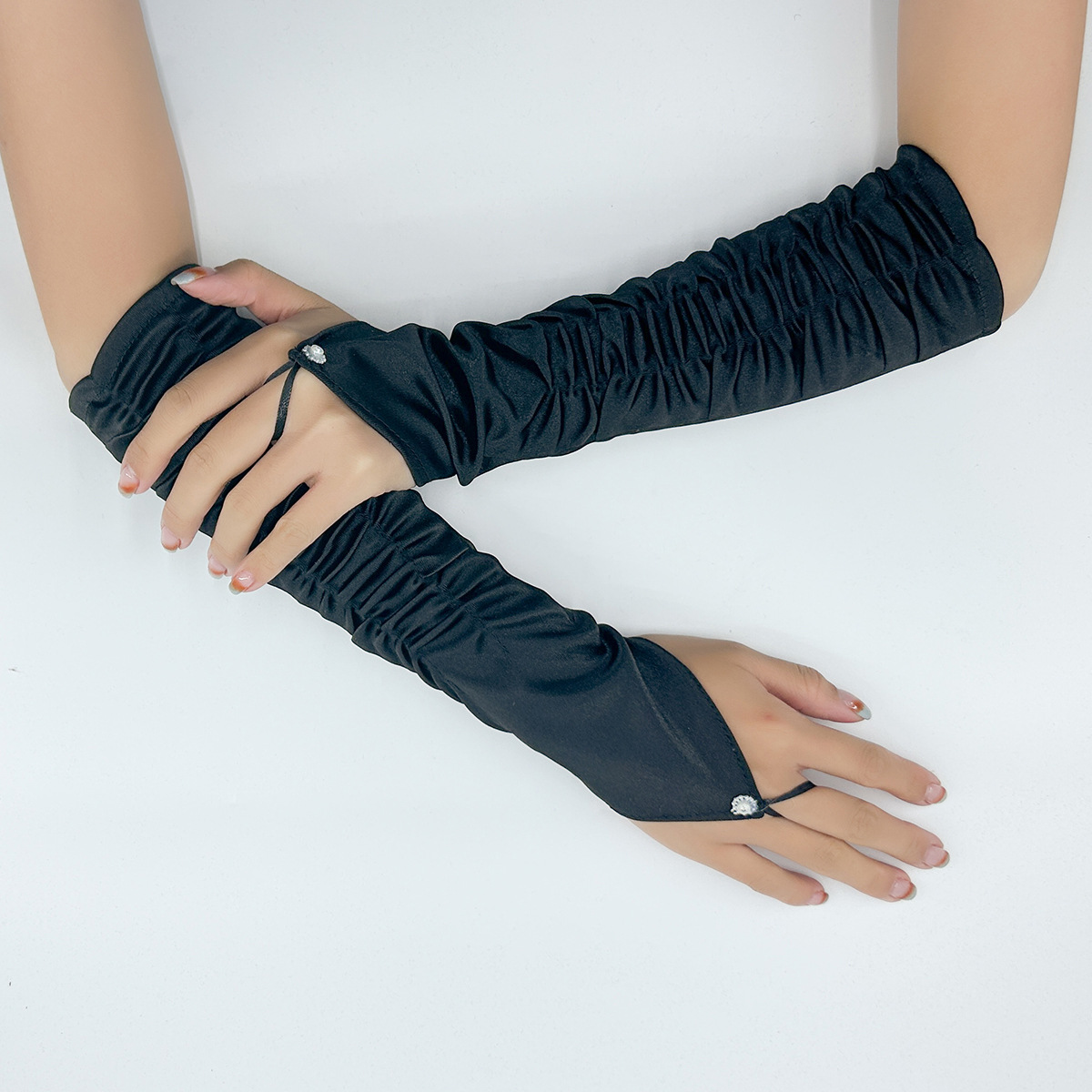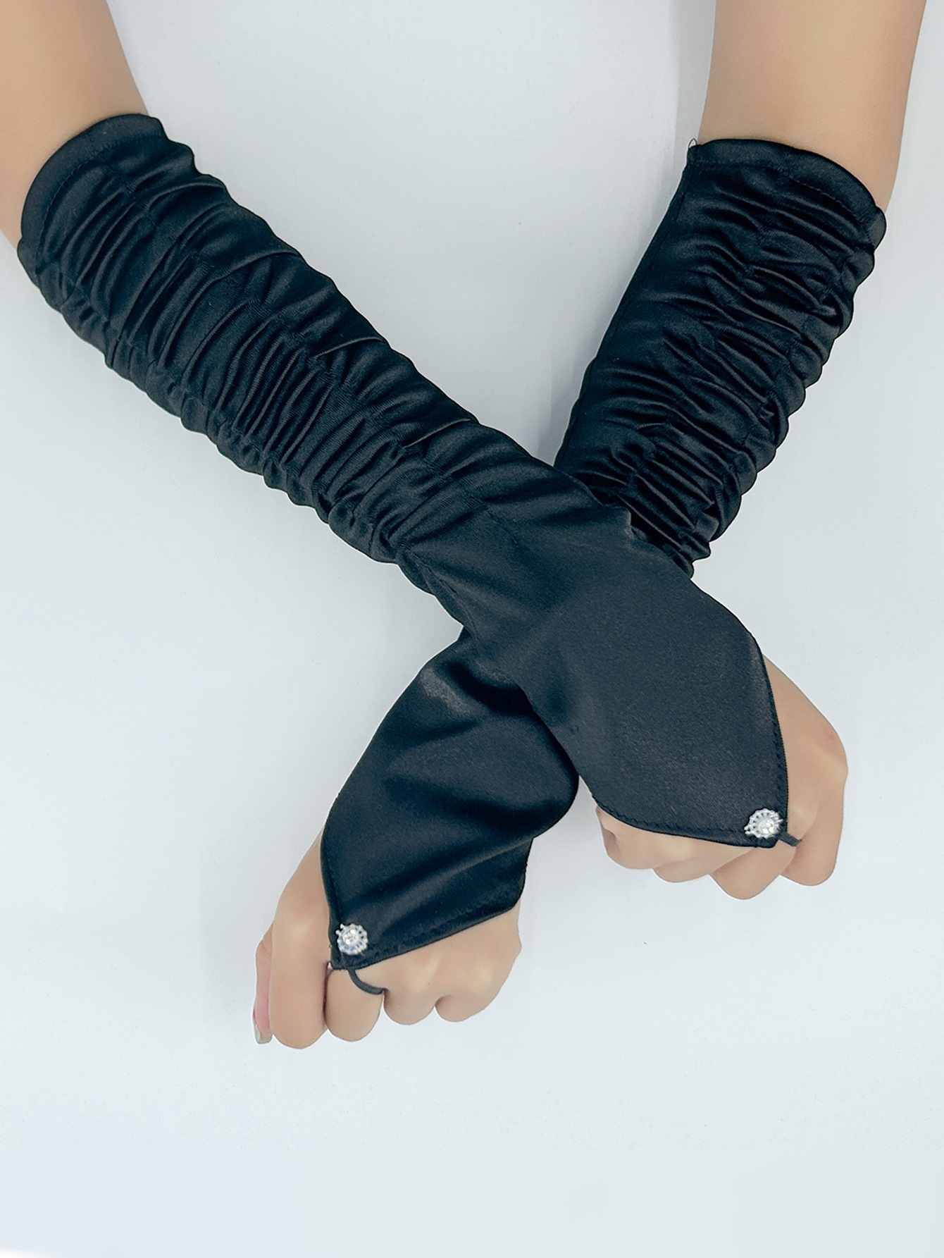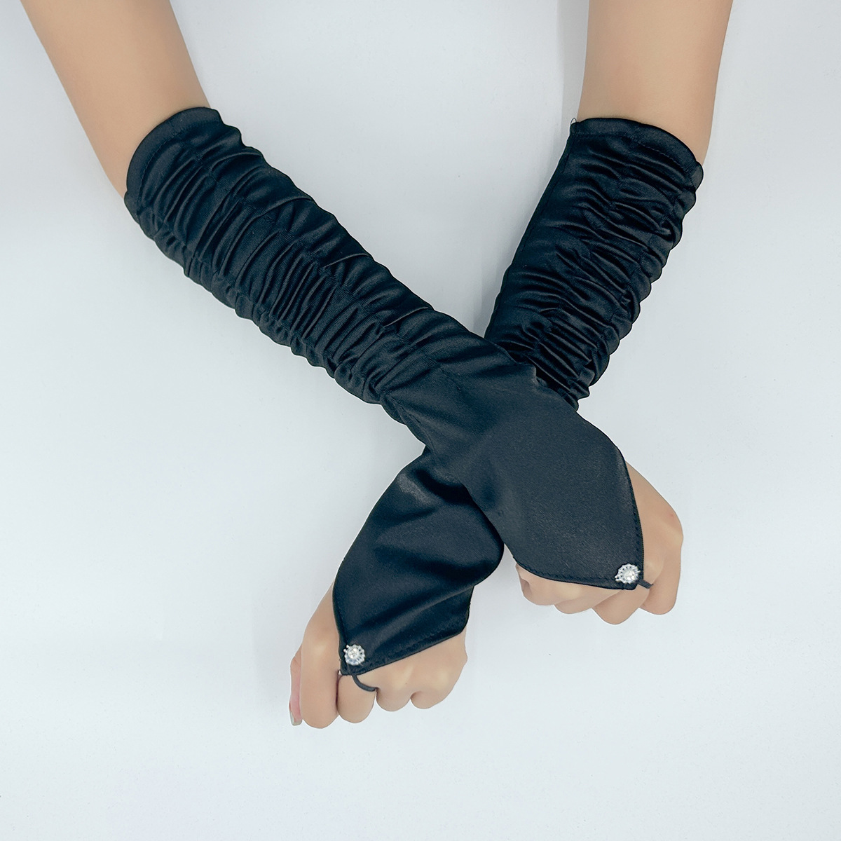 국경 간 새틴 주름 신부 장갑 새틴 가방 손가락 장갑 결혼식 결혼식 무대 파티 패션 장갑 도매