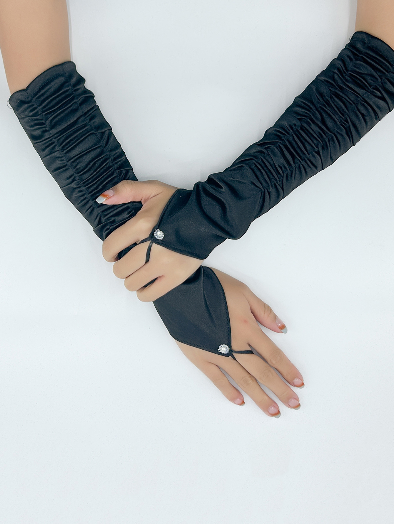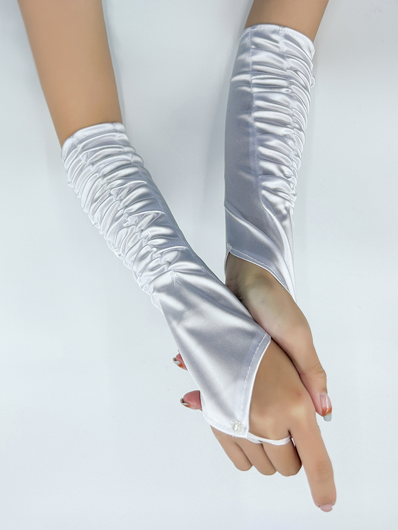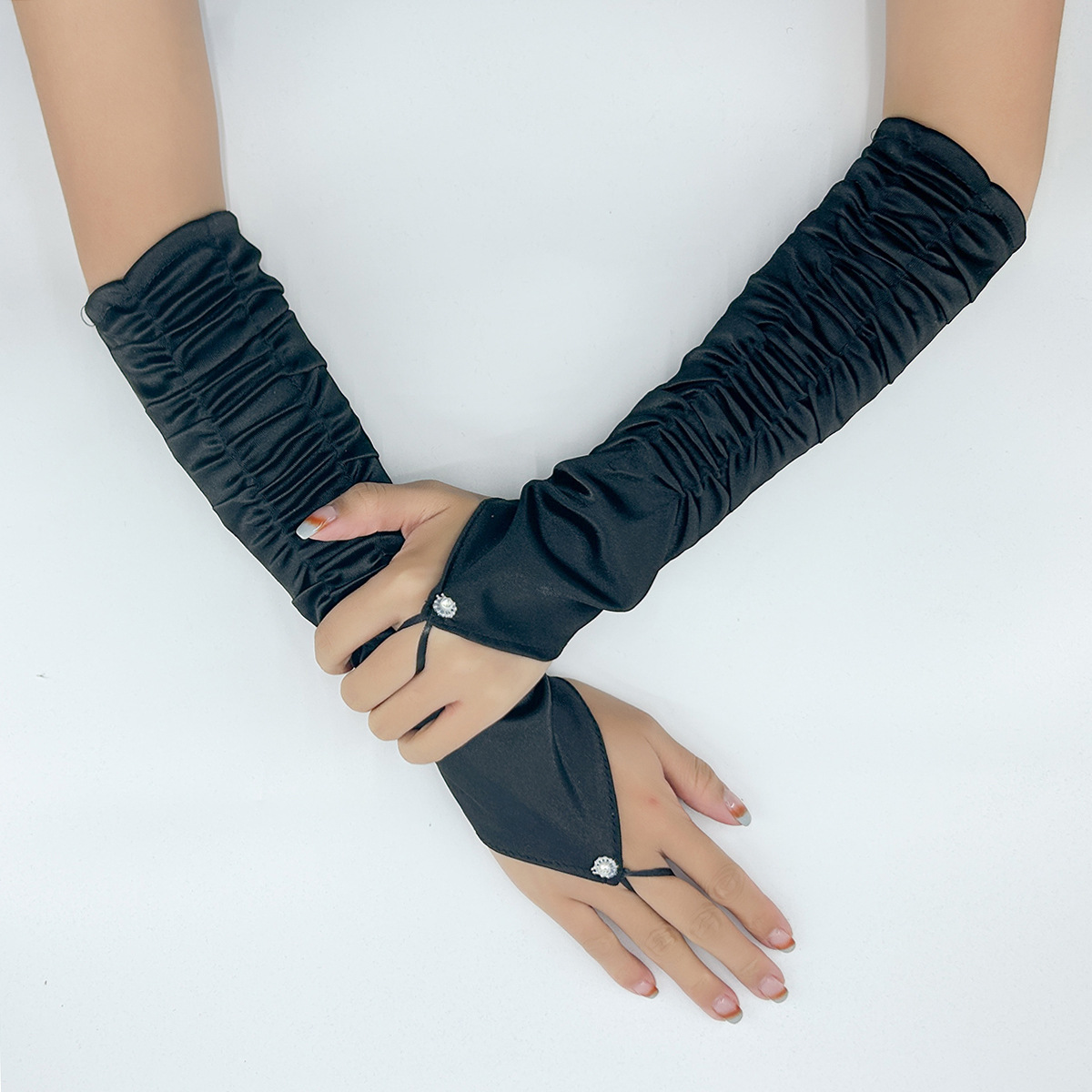 국경 간 새틴 주름 신부 장갑 새틴 가방 손가락 장갑 결혼식 결혼식 무대 파티 패션 장갑 도매스토어 가기