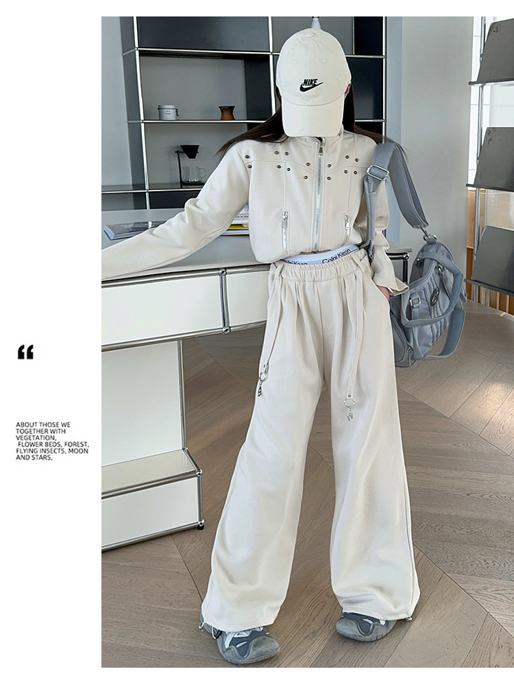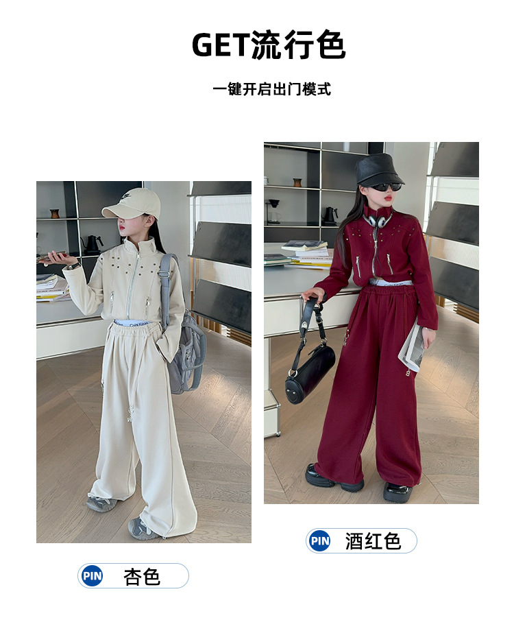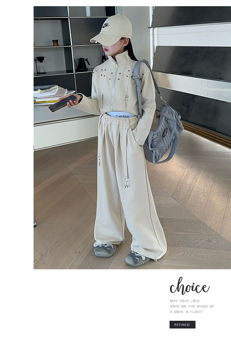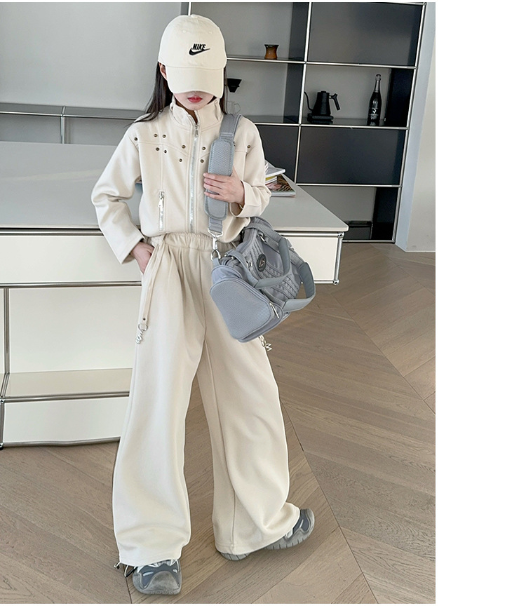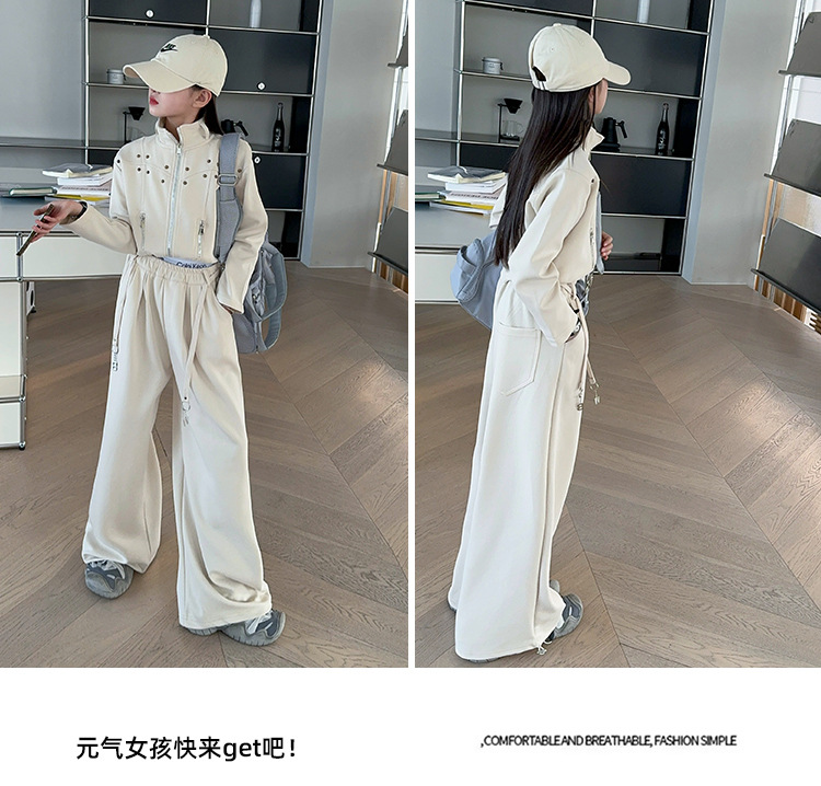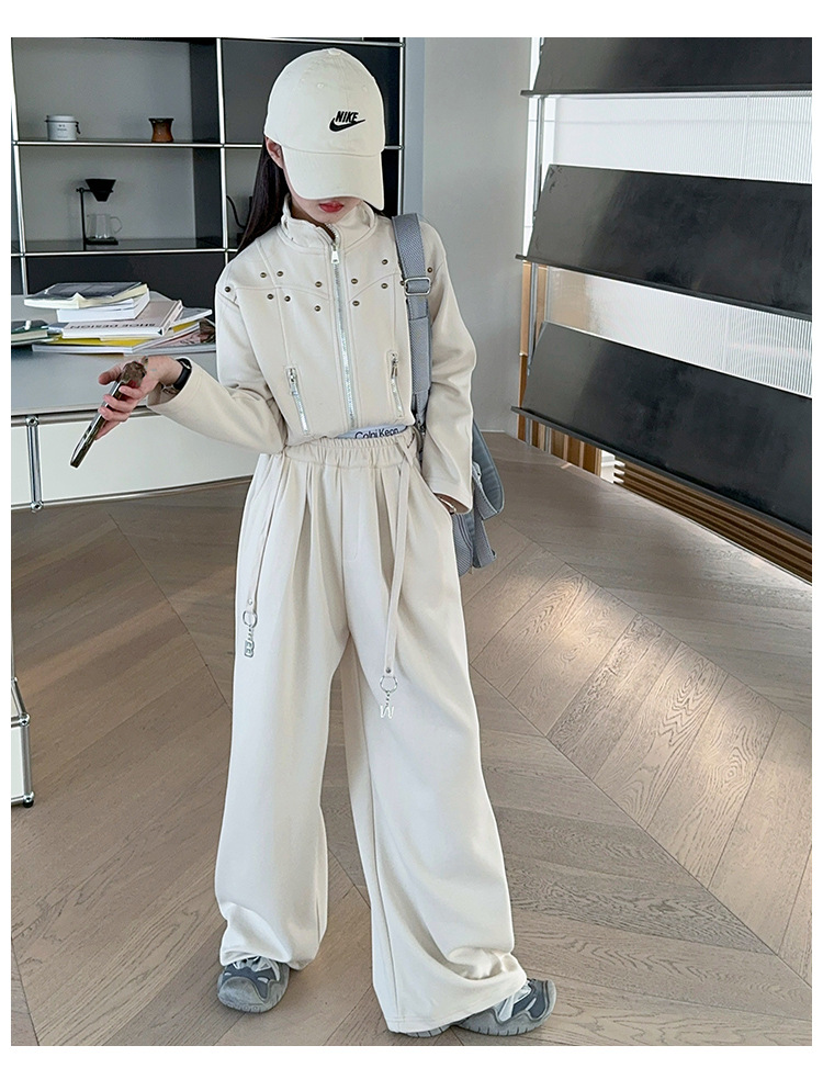 여자 2024 봄 세트 중형 및 대형 어린이 캐주얼 재즈 댄스 공연 의류 한국 캐주얼 투피스 스탠드 칼라 카디건스토어 가기