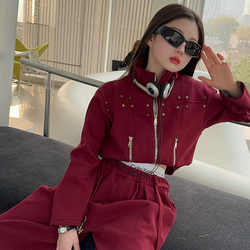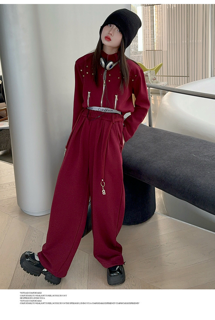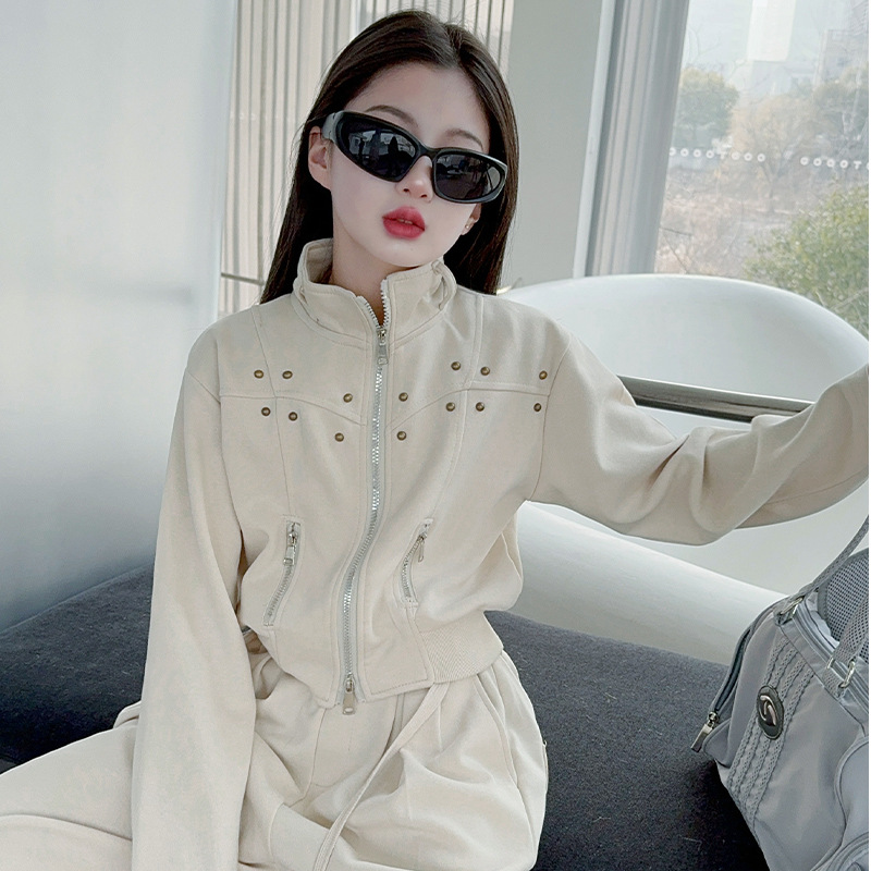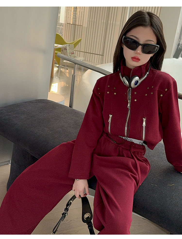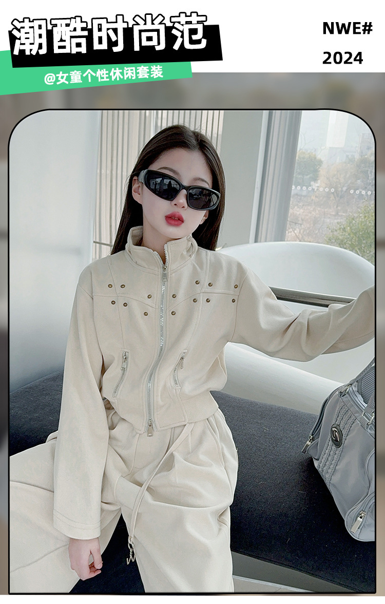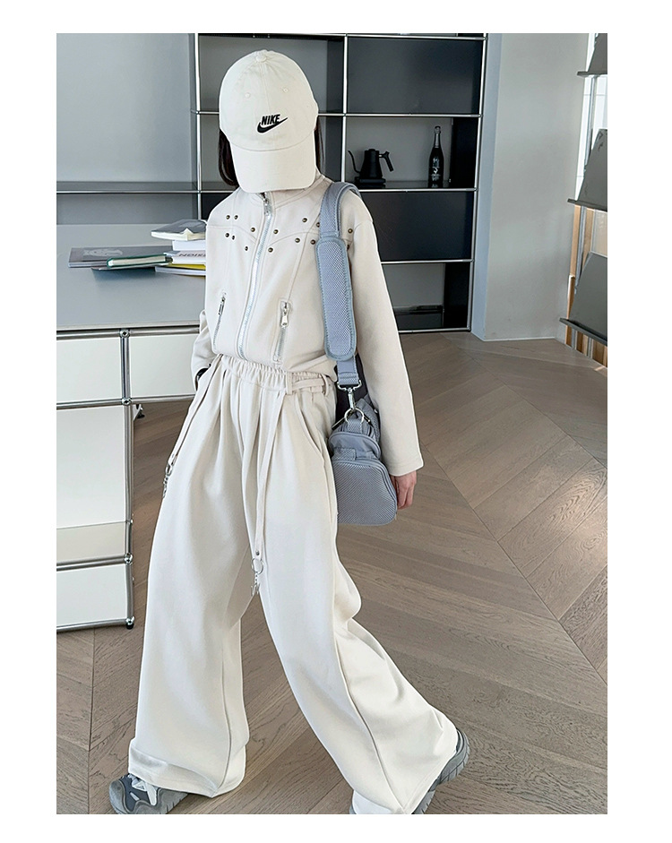 여자 2024 봄 세트 중형 및 대형 어린이 캐주얼 재즈 댄스 공연 의류 한국 캐주얼 투피스 스탠드 칼라 카디건스토어 가기