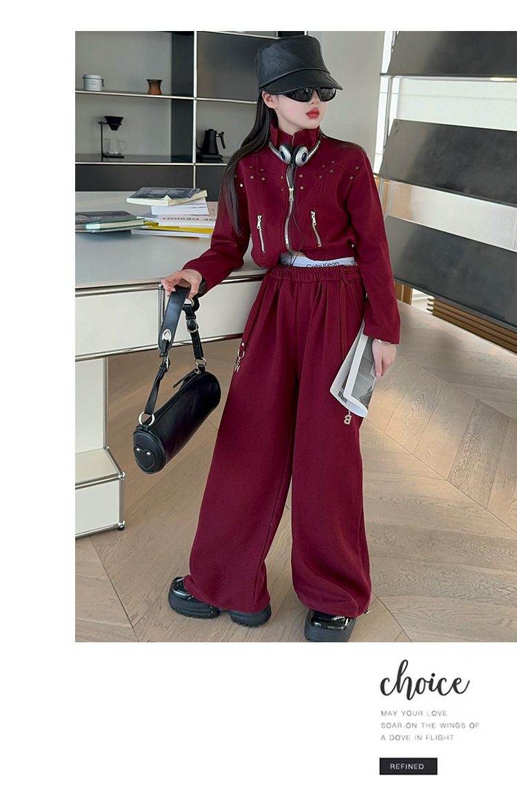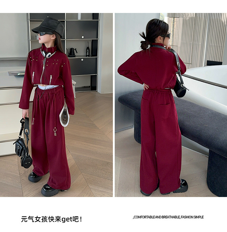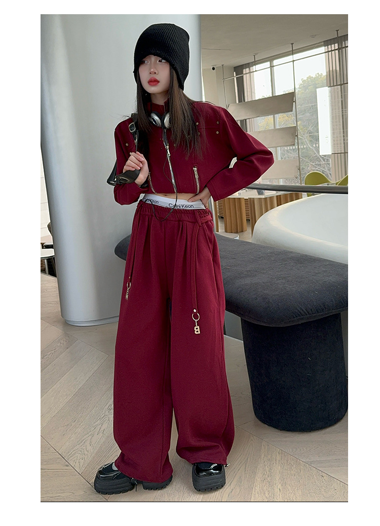 여자 2024 봄 세트 중형 및 대형 어린이 캐주얼 재즈 댄스 공연 의류 한국 캐주얼 투피스 스탠드 칼라 카디건