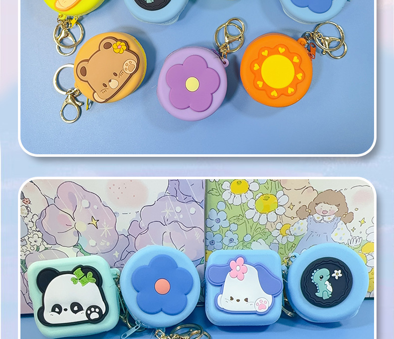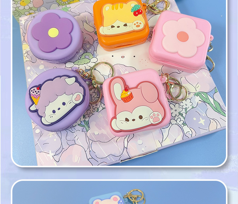만화 라운드 스퀘어 실리콘 동전 지갑 스타일 귀여운 동전 저장 가방 여성 지갑 이어폰 키 케이스스토어 가기
