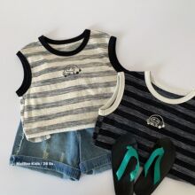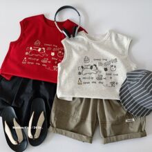 麦宝男童夏装短袖2026新款韩版儿童小汽车条纹无袖背心湖州织里潮