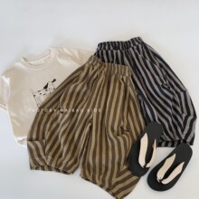 麦宝儿童防蚊裤2026夏款新款男女童宽松条纹弯刀裤宝宝九分裤批发