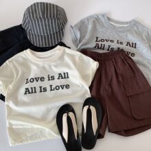麦宝男童套装2026夏季新款儿童字母运动短袖短裤两件套宝宝夏装潮