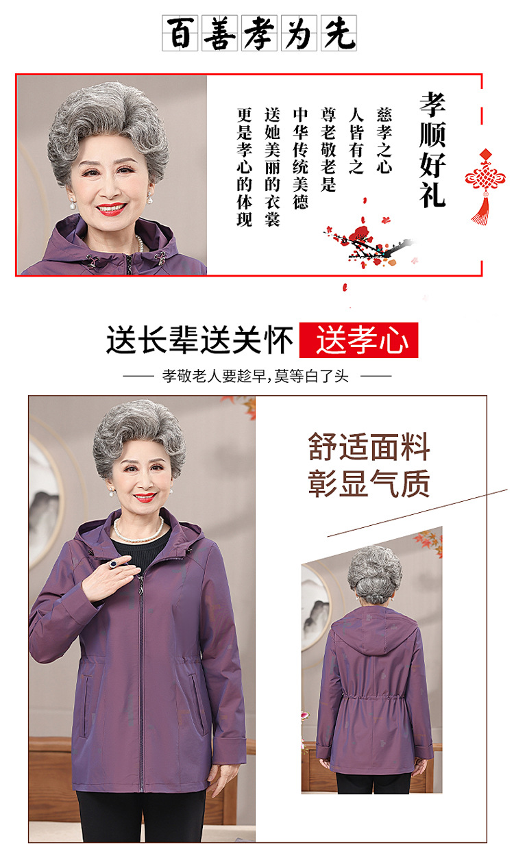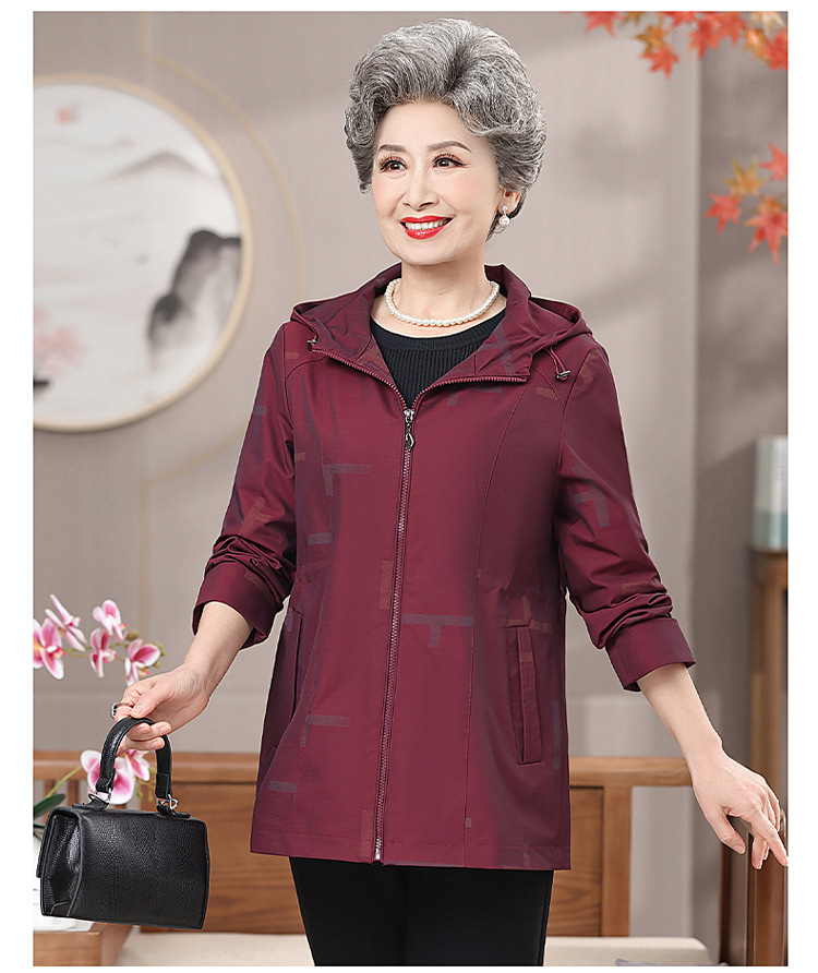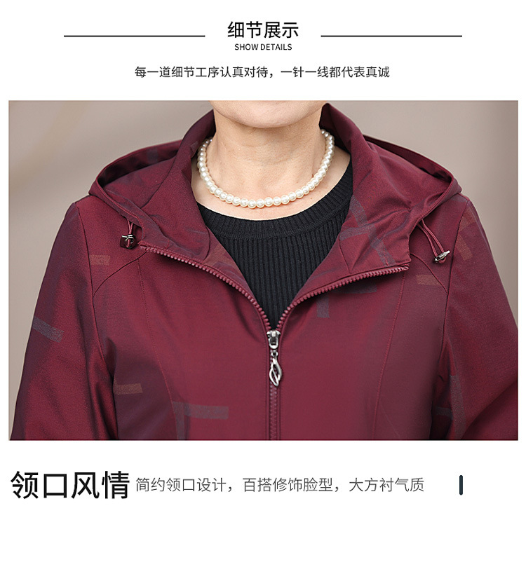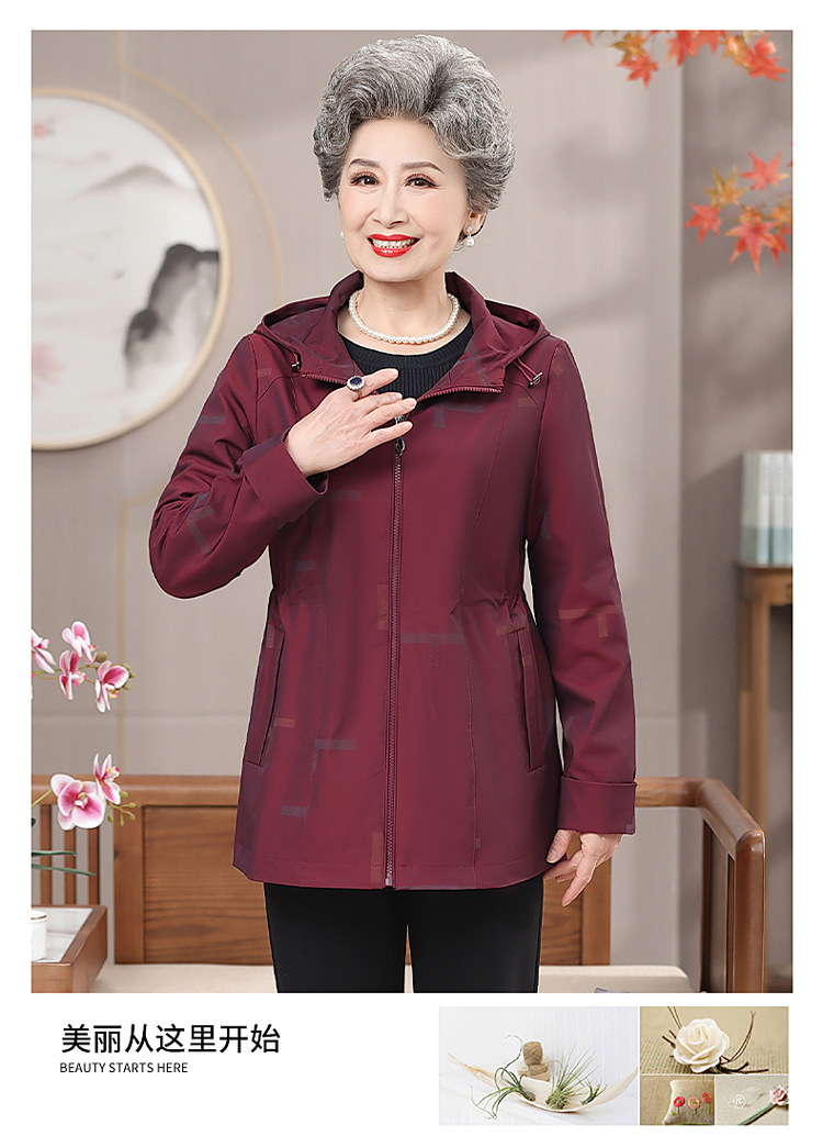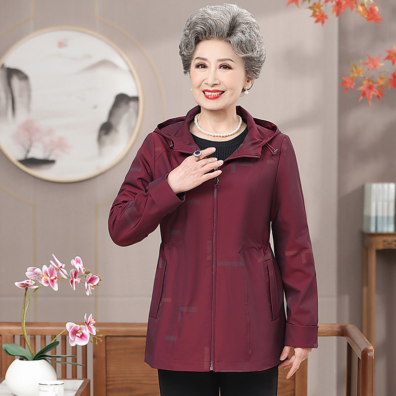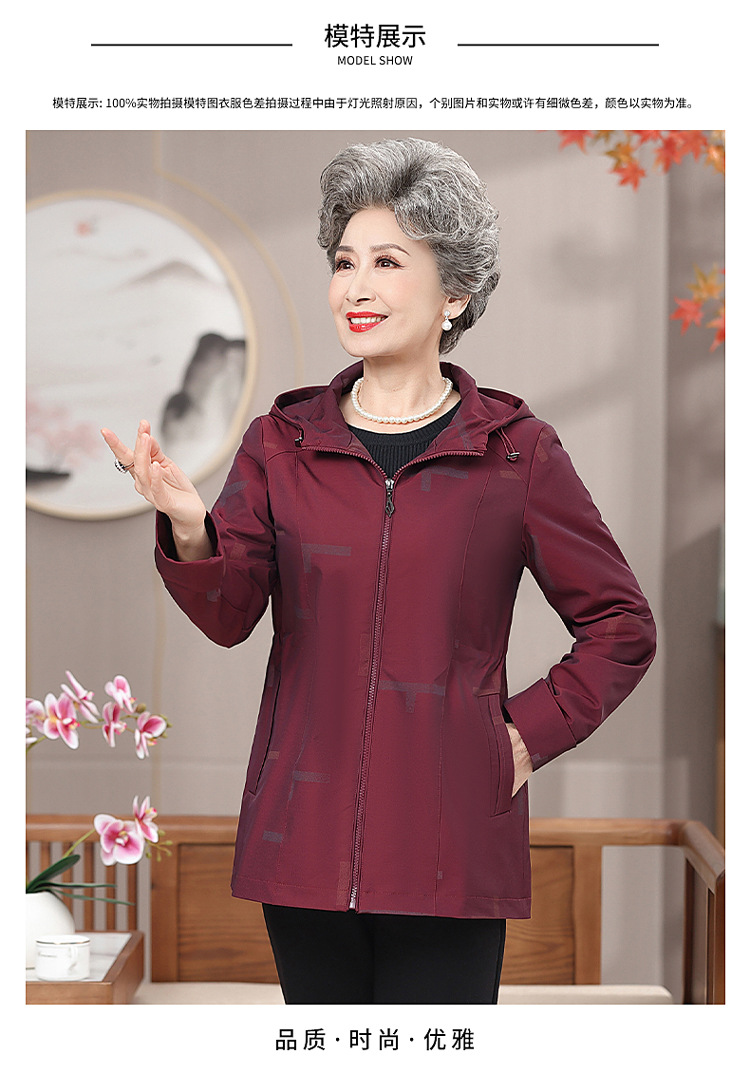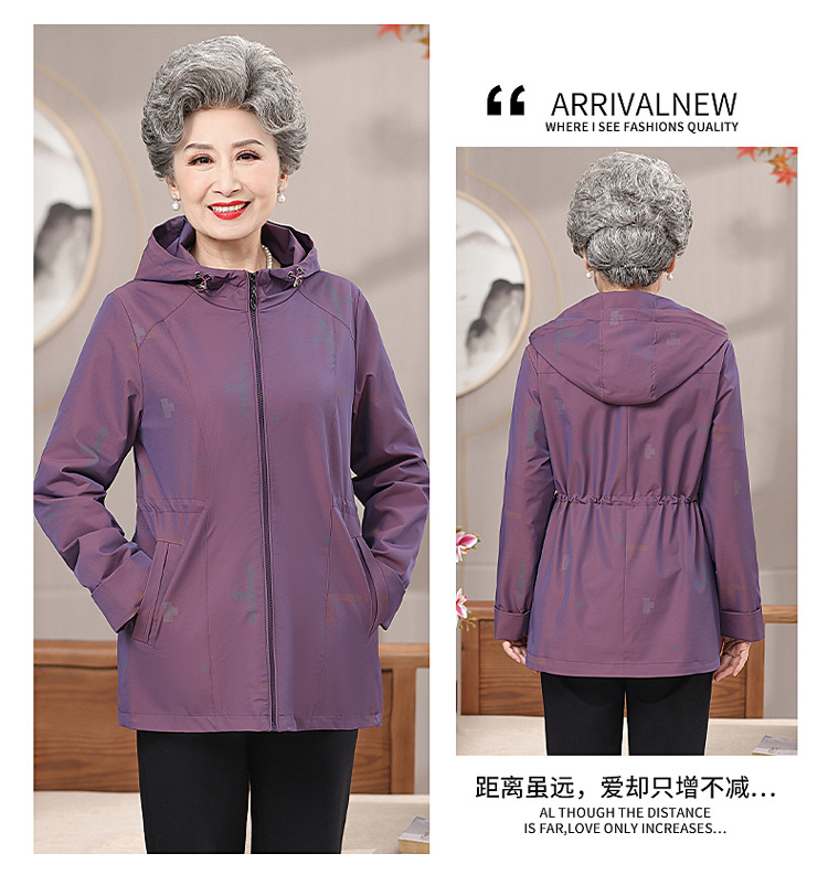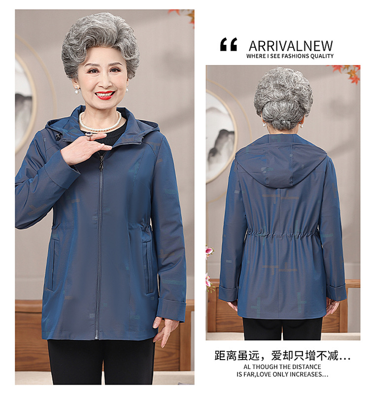 2024 봄 새로운 중년 및 노인 엄마 트렌치 코트 후드 느슨한 캐주얼 할머니 플러스 사이즈 재킷 탑